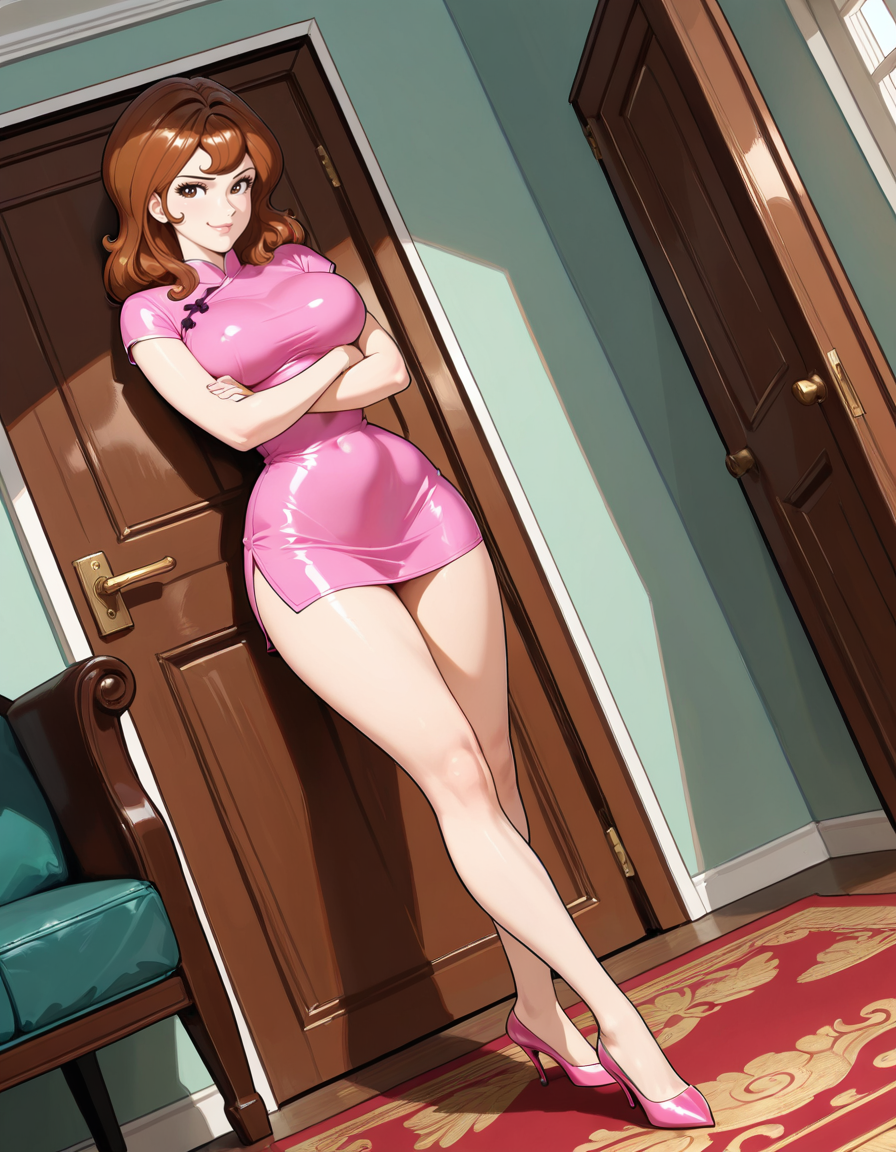 | 训练词汇 | (mine_fujiko_pt1), (retro artstyle, official style:0.5), (dark brown eyes, brown hair, medium hair, lips, large breasts, breasts apart, narrow waist, wide hips, curvy, skin tight)已复制! (fujiko_shirt_and_jeans, red scarf, black collared shirt, bursting breasts, three-quarter sleeves, brown belt, gold o-ring buckle, dark blue flared jeans), (pink platform sandals:0.6)已复制! (fujiko_twotone_dress, two-tone dress, diamond-shaped design, dark blue choker, sleeveless, navel cutout, navel, back cutout, side slit), (high heels:0.6)已复制! (fujiko_china_dress, pink china dress, microdress, short sleeves, side slit), (pink high heels:0.6)已复制! (fujiko_updo, updo, big hair, fujiko_kimono, kimono, huge breasts, obi), (lower hem floral pattern, tabi:0.6), (zouri:0.4)已复制! (fujiko_tank_top, white tank top, midriff peek, purple belt, silver o-ring buckle, white microskirt, pink thigh holster), (white lace-up boots:0.6)已复制! |