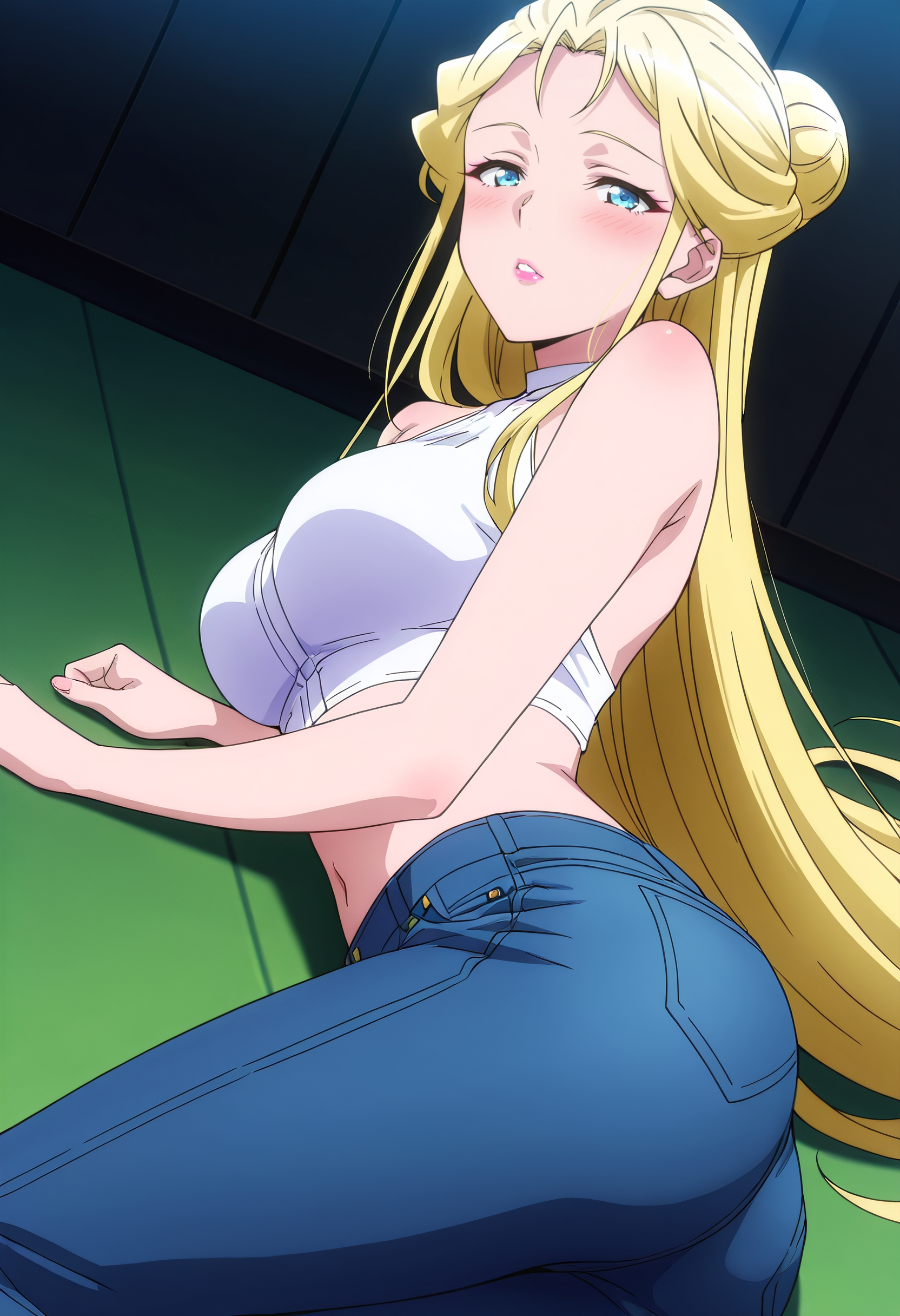 IAWYuel, 금발, 긴 머리, 파란 눈, 매우 긴 머리, 단일 머리 뾰족, 머리 뾰족, 립스틱, 메이크업,