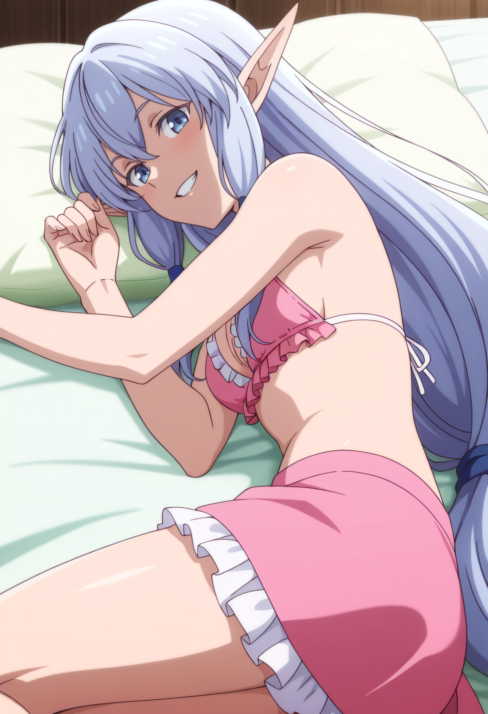 IMMMaria, 긴 머리, 파란 머리, 뾰족한 귀, 엘프, 파란 눈, 측면 머리카락, 매우 긴 머리, 낮게 묶인 측면 머리카락, 눈 사이의 머리카락, 긴 뾰족한 귀, 어두운 엘프,