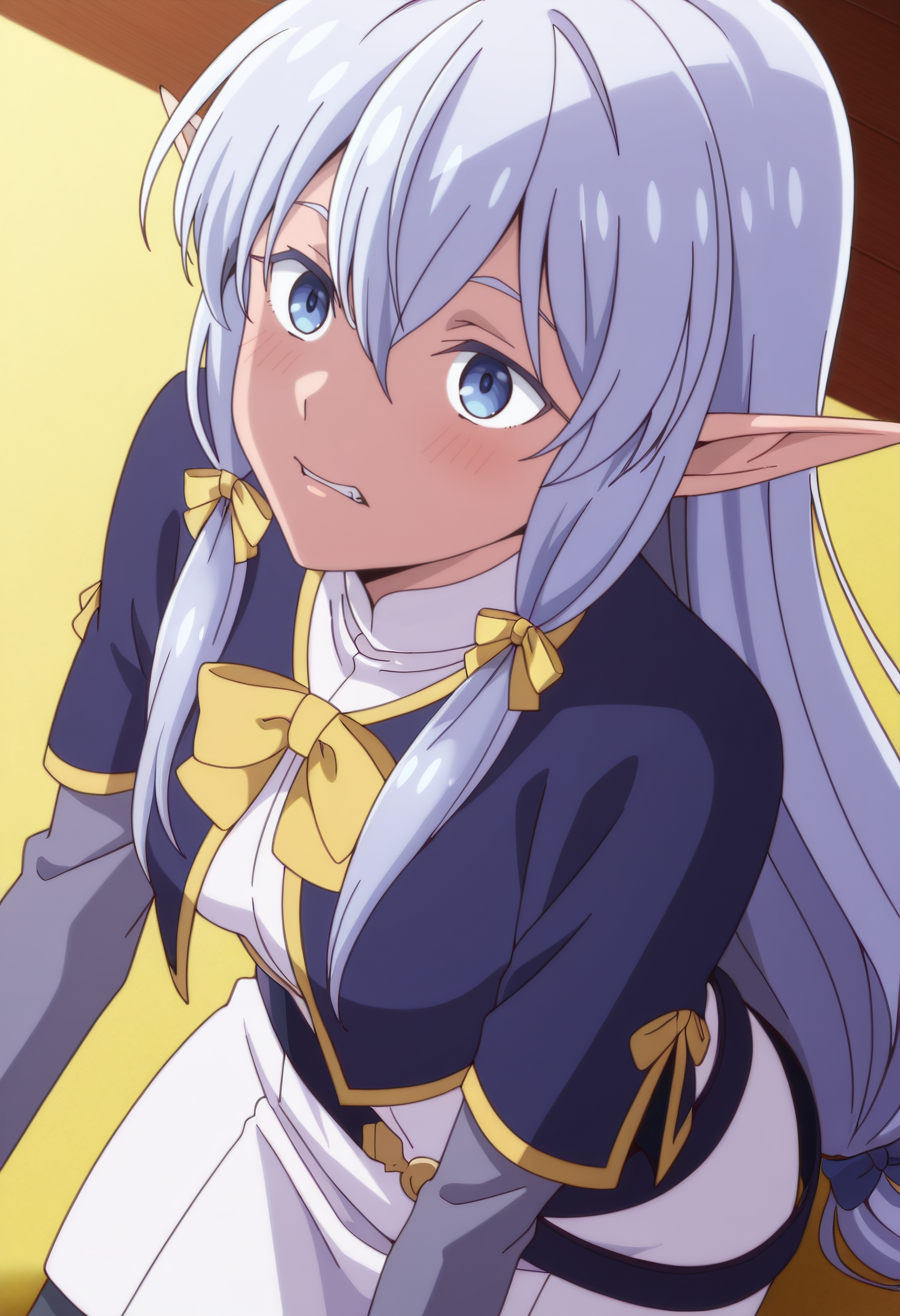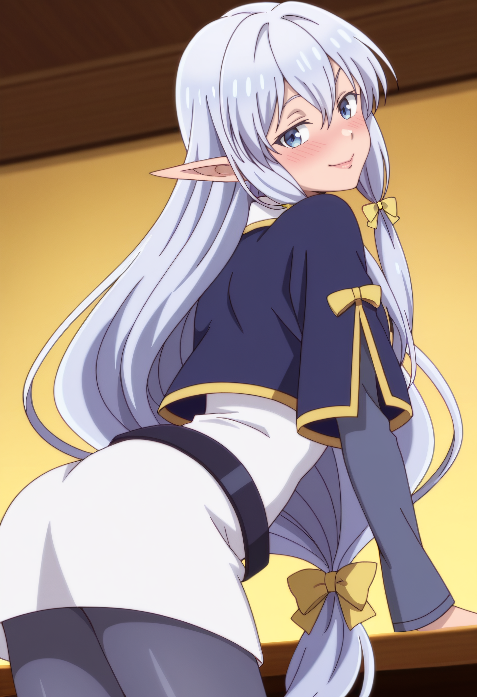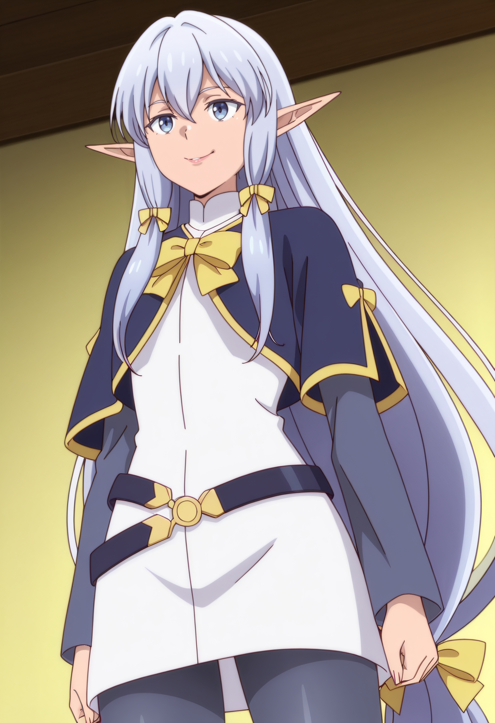 MariaOutfit, 리본, 머리 리본, 활, 카프레트, 트레스 리본, 노란 활, 파란 카프레트, 노란 리본, 넥타이, 벨트, 드레스, 노란 넥타이, 긴 소매, 머리 리본, 팬티스타킹,
