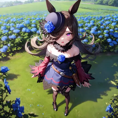 Headwear and blue rose are not included!