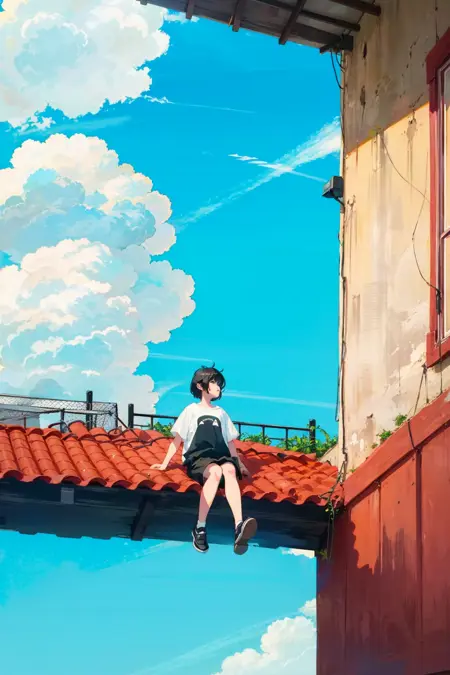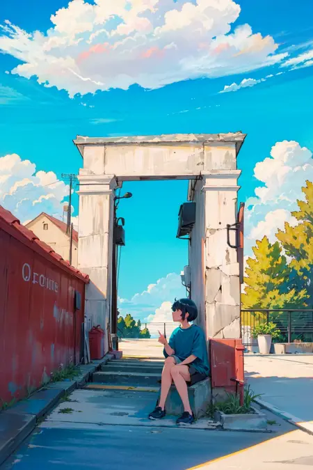 This is a LoCon model trained from 87 images about flatcolor small town background,the bright colors are reminiscent of air conditioning,and that's where the name comes from.