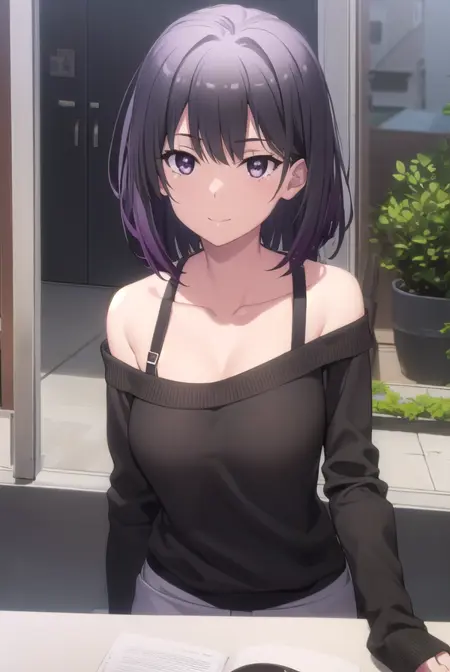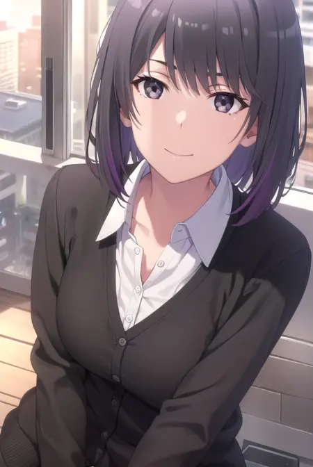 春野雪华,短发,头发遮住眼睛,(黑眼睛:1.3),黑发,渐变发色,双色发,