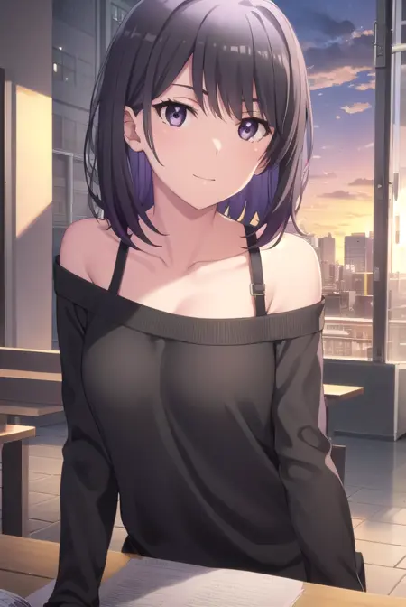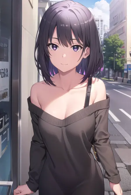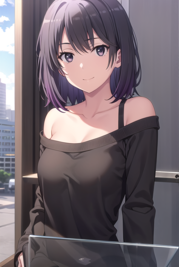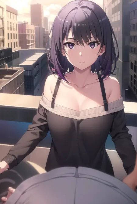 毛衣,露肩,肩带,紫色毛衣,长袖,锁骨,