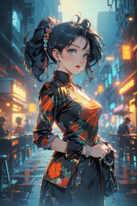 输入juice触发橙汁,不加juice加入1girl就变成赛博朋克背景lora