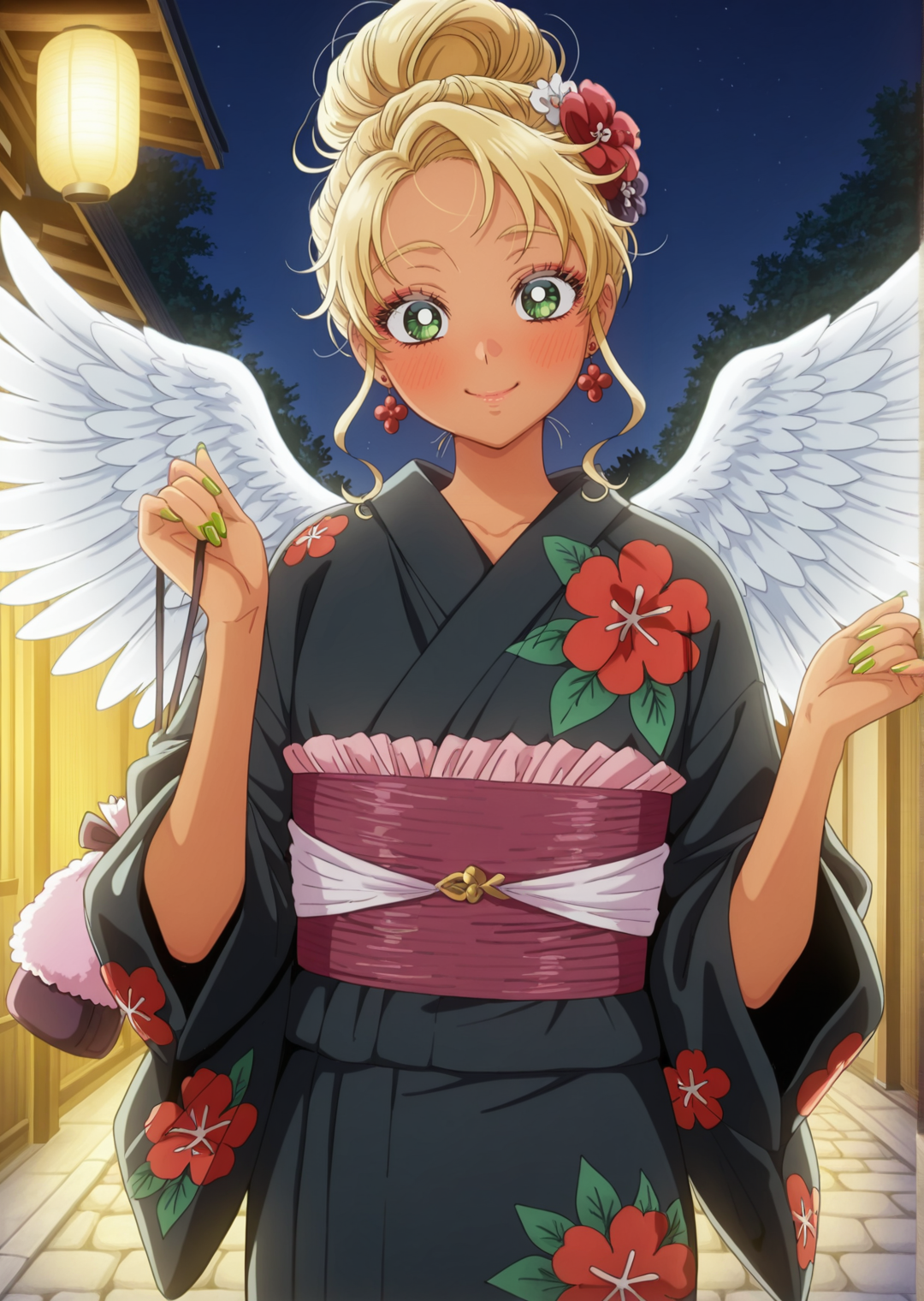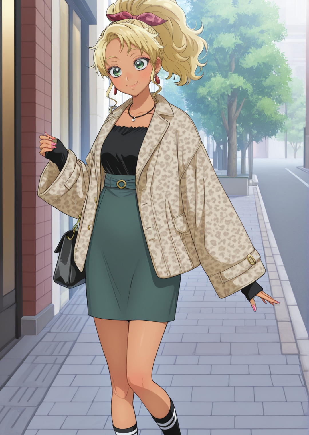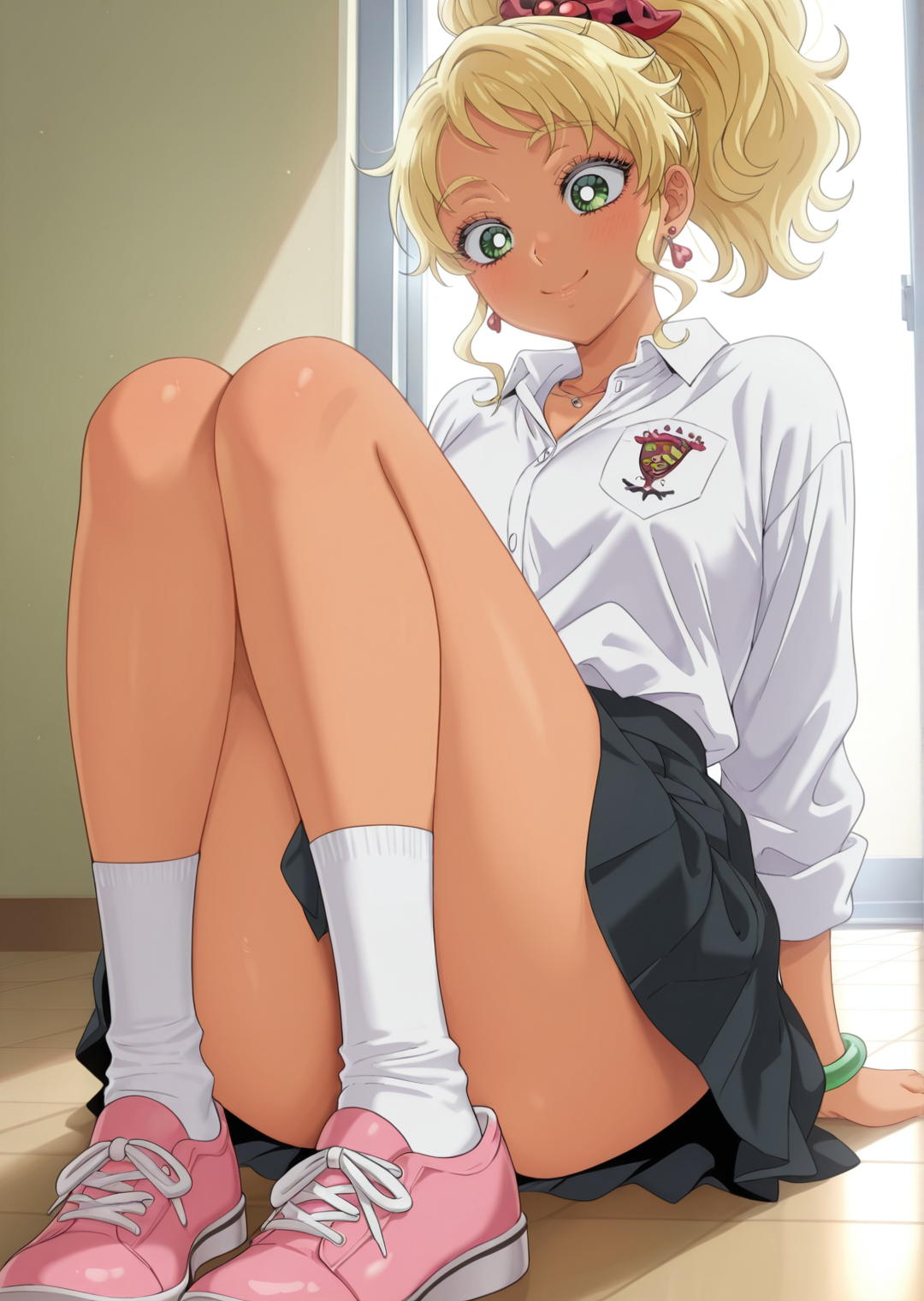 kotoko ijichi, 1girl, long hair, blonde hair, green eyes, dark skin female