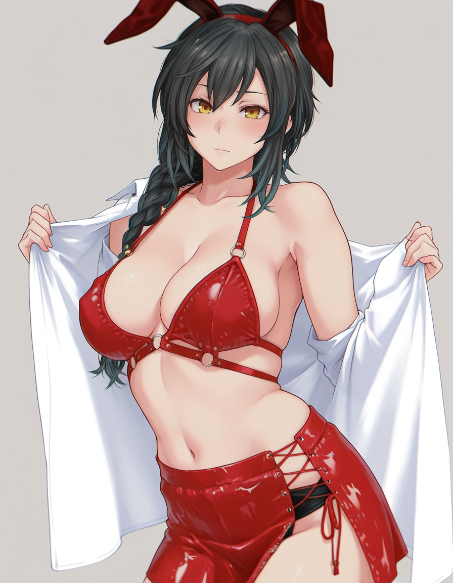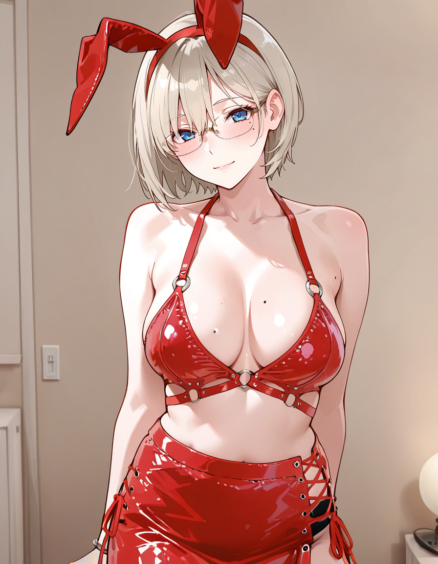mai_leather_bikini,red_bikini,leather_skirt,red_skirt
