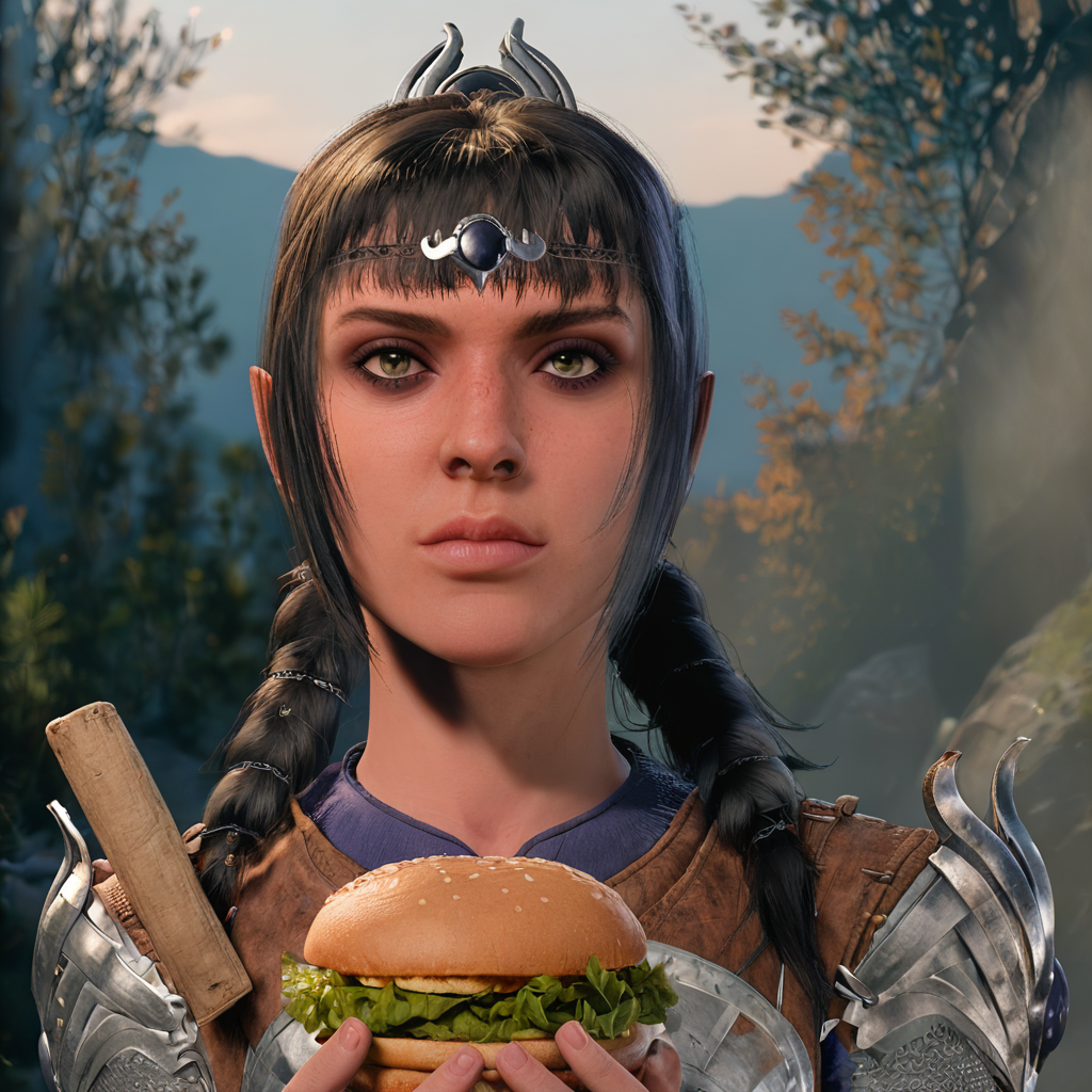 还标注了以下内容:'judging'、'holding a steel cup'、'bow and arrow on her back'、'puckered lips'、'rocks and trees in the background'、'wearing a bra'、'holding a trinket'、'sitting'、'sad'、'half body shot'、'stone wall out of focus in the background'、'night time'、'upset'、'dirt trail in the background'、'close up'、'tent and stone wall in the background'、'wooden baton on her back'、'holding a steel up'、'rocks and shrubs in the background'、'logs and rocks in the background'、'sword on her back'、'dark clouds in the background'、'full body shot'、'angry'、'at night'、'mountains and shrubs in the background'、'rocks in the background'、'at night time'、'standing in a forest'。