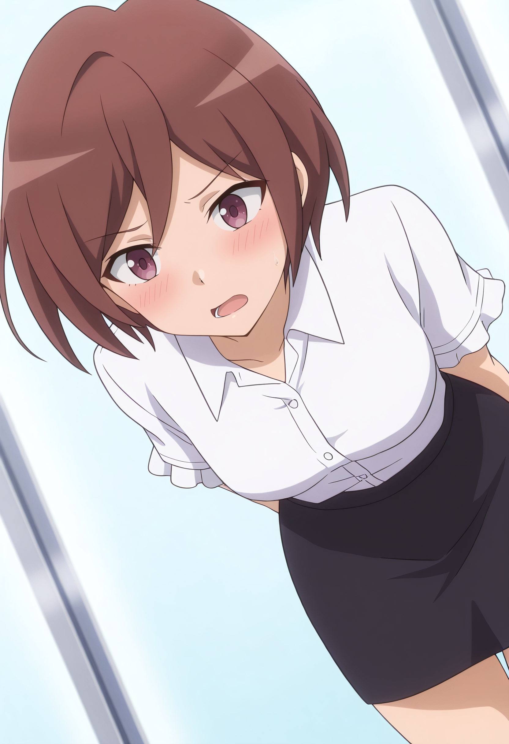 IAWSulas、ショートヘア、茶色の髪、紫色の目、茶色の目、赤い目、