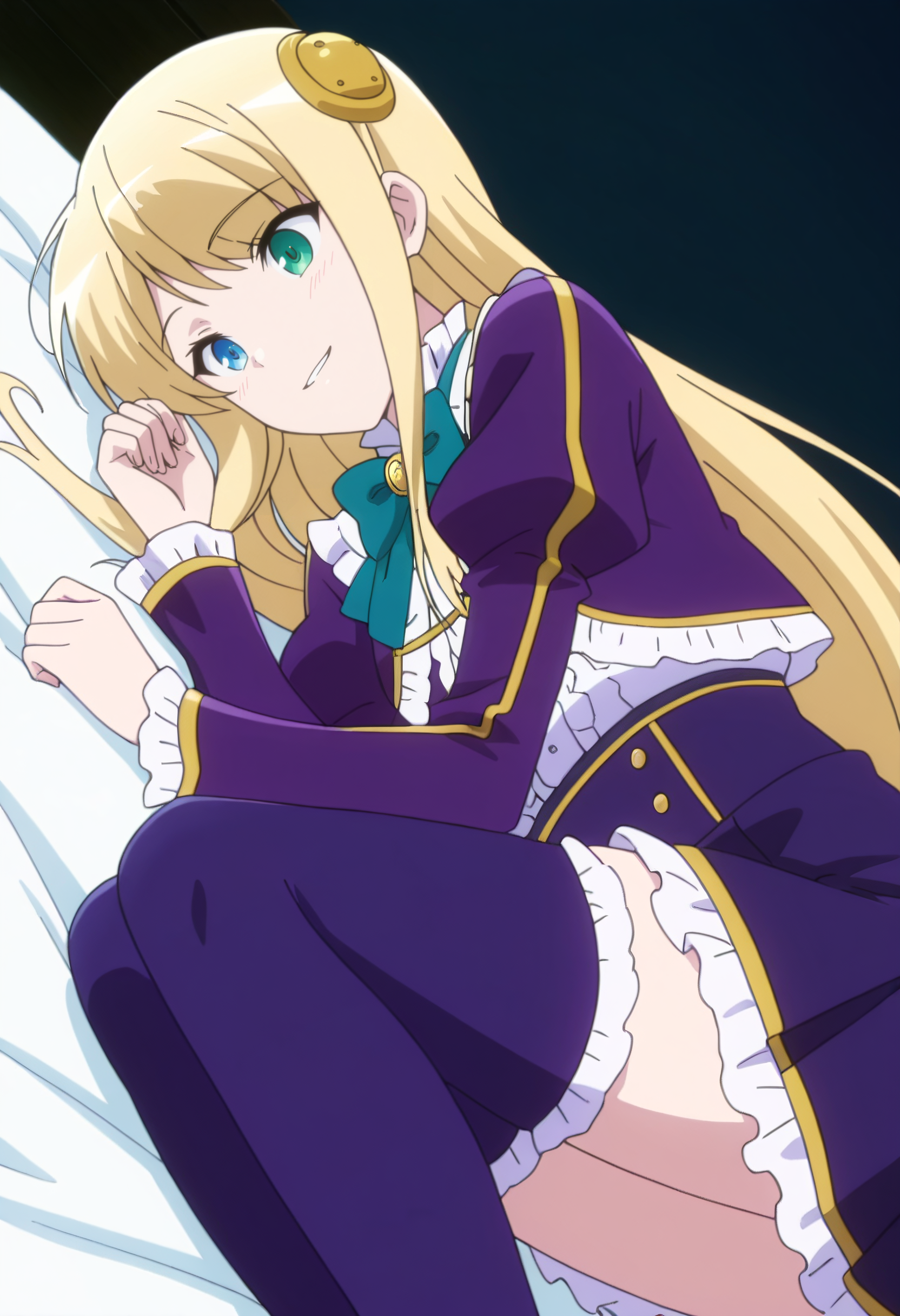 YuminaOutfit, 머리 장식, 리본, 프릴, 긴 소매, 넥타이, 풍성한 소매, 치마, 줄리엣 소매, 드레스, 재킷, 셔츠, 파란 리본, 학교 유니폼, 허벅지 양말, 녹색 넥타이, 흰 셔츠, 보라색 치마, 리본, 프릴 치마, 허리 높은 치마, 주름 치마, 헤어팟, 파란 허벅지 양말,