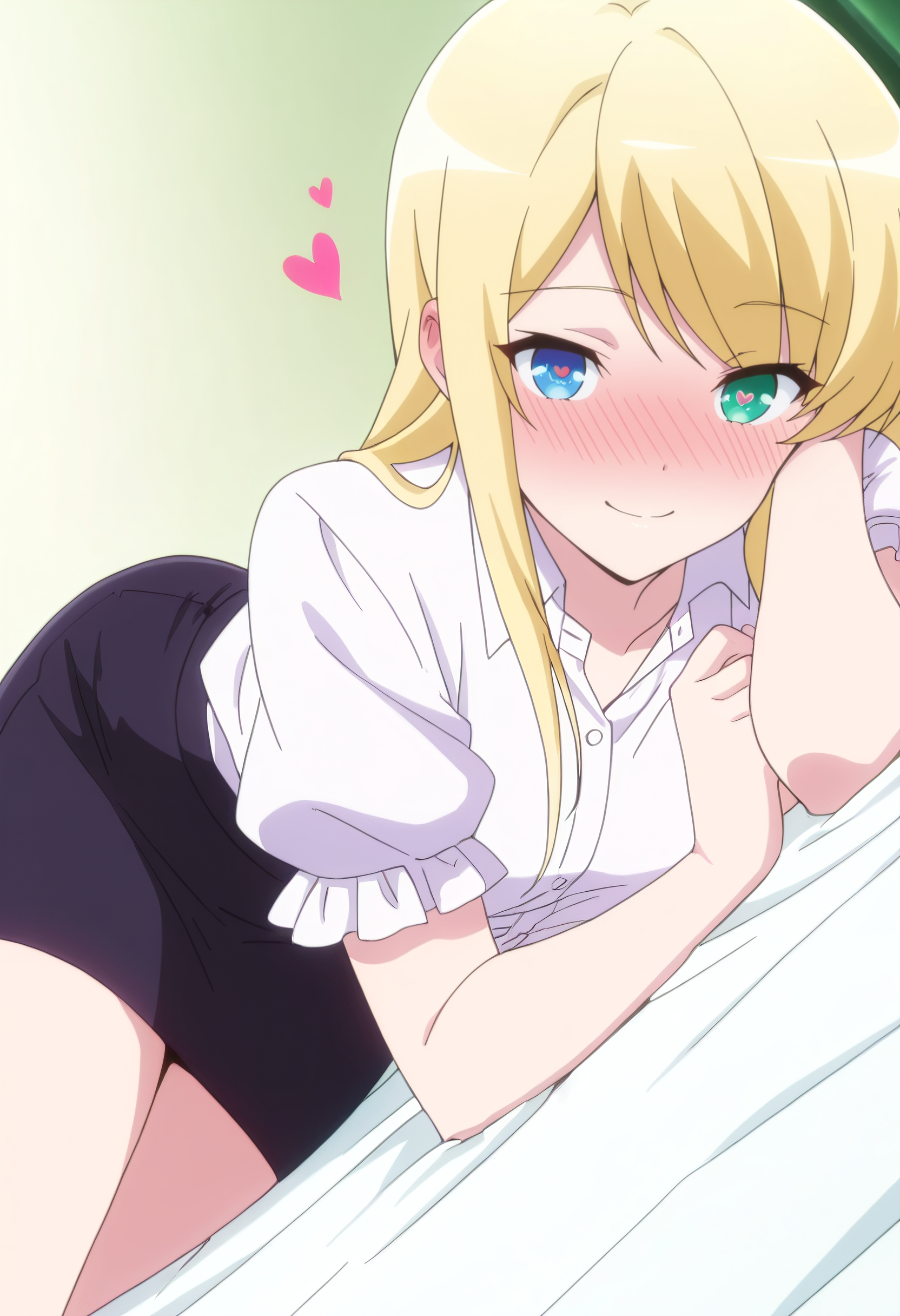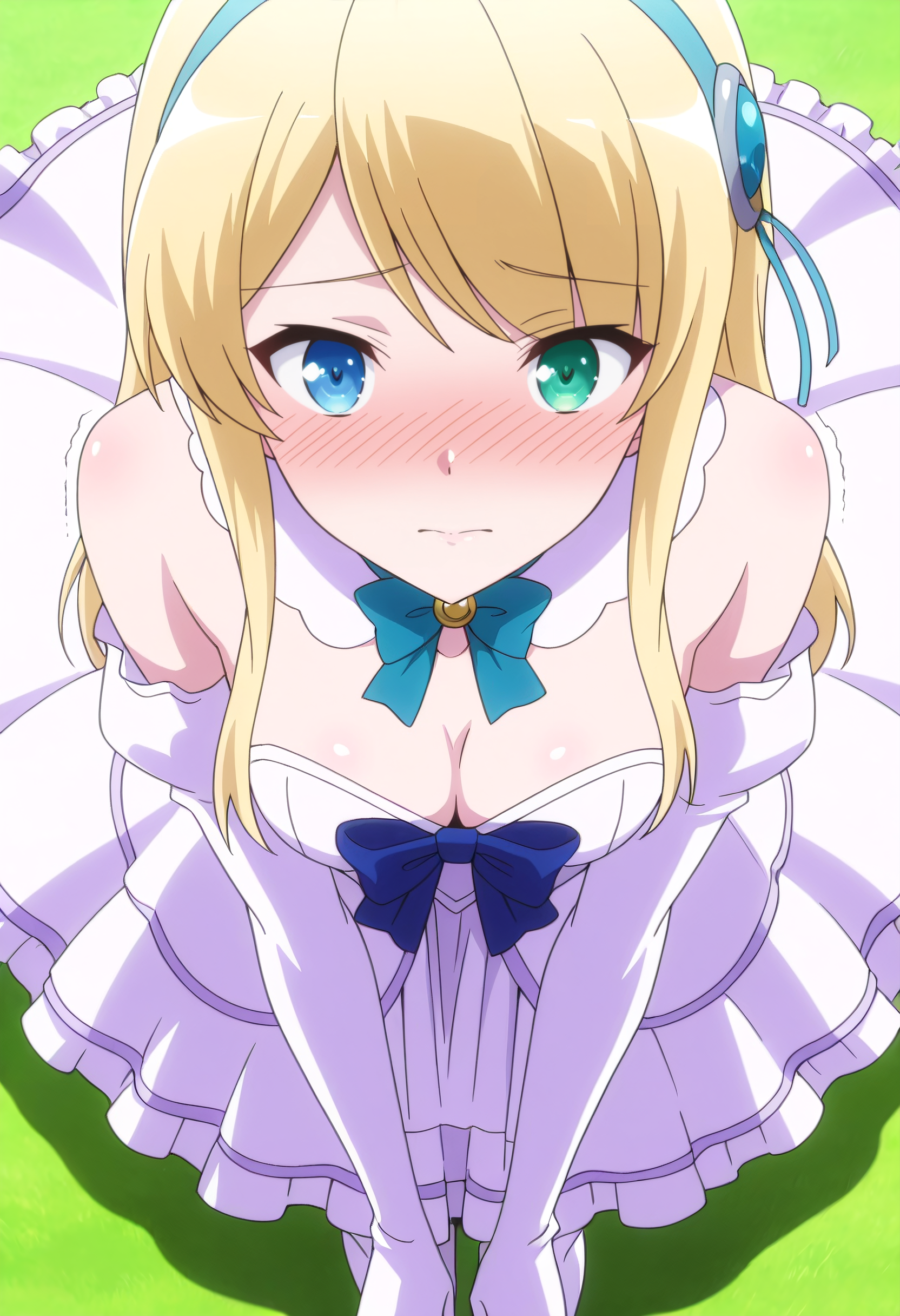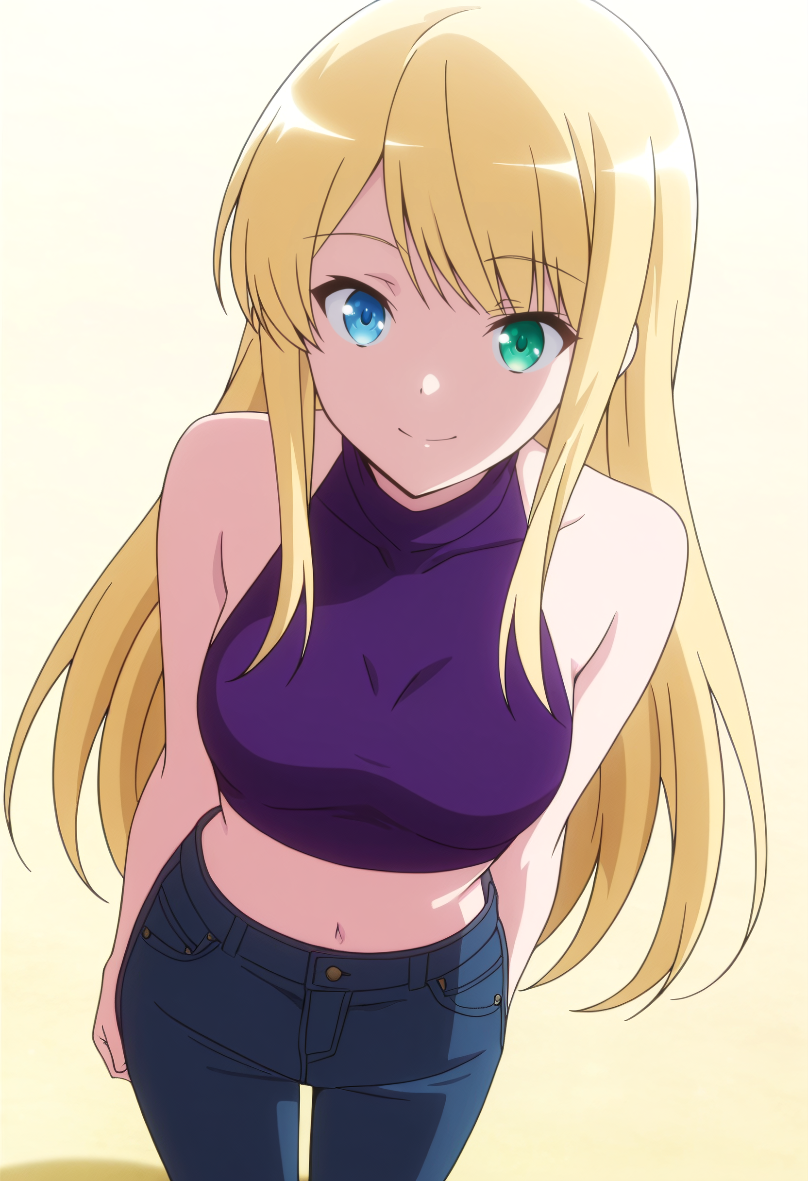 IAWYumina, 금발, 긴 머리, 이색 홍채, 파란 눈, 녹색 눈,