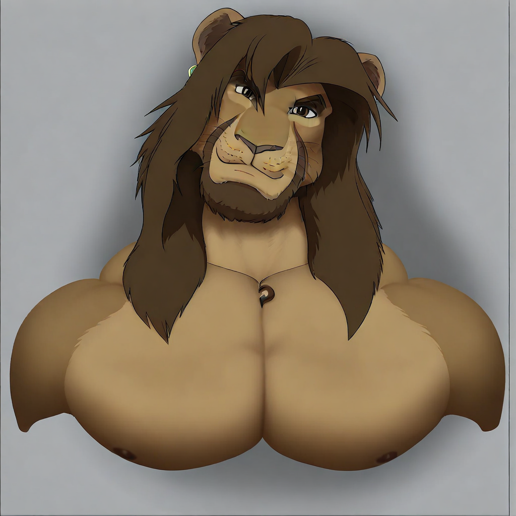안트로, 걸작, 놀라운 품질, 시청자를 바라보는, 갈색 동공, 흰자위, mitkazan, 동일한 메달리온, 잘생긴; 1남자, 가슴근육, 남성 중심, galen dhaelos, 갈색 눈, 큰 가슴근육, 최고 품질, 동물 귀, 동일한 자세, HD, 근육질 남성, 사자, 근육질, 회색 배경, 안면 털, 혼자, 큰 가슴근육, 유두, 사자 귀, 남성 중심,