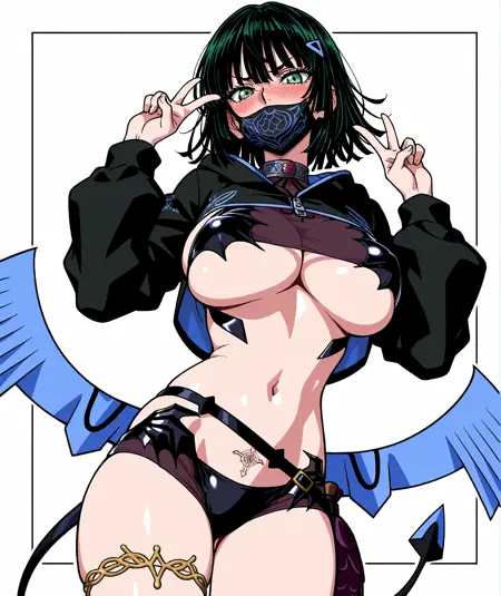 長袖、ジャケット、水着、ビキニ、黒ジャケット、黒ビキニ、ショートジャケット、マウスマスク、ショール(衣装)、