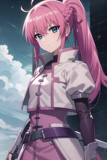signum, 긴 머리, 파란 눈, 머리리본, 꼬임머리, 분홍색 머리,