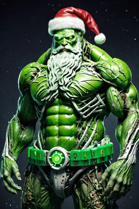 산타는 산타의 워크아웃숍에서 물건을 골라 옮기고 놓는 데 열심히 일해 왔다. 이제 산타 할아버지는 알파 수컷의 능력과 북극의 풍만한 체형을 활용해 당신을 완전히 holiday spirit로 채우고 있다.