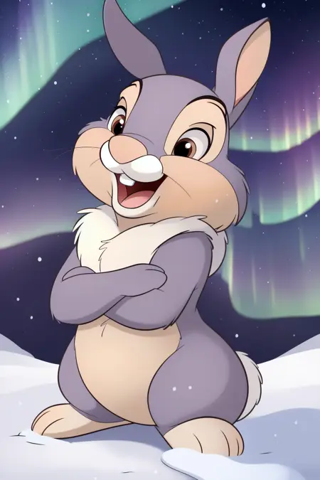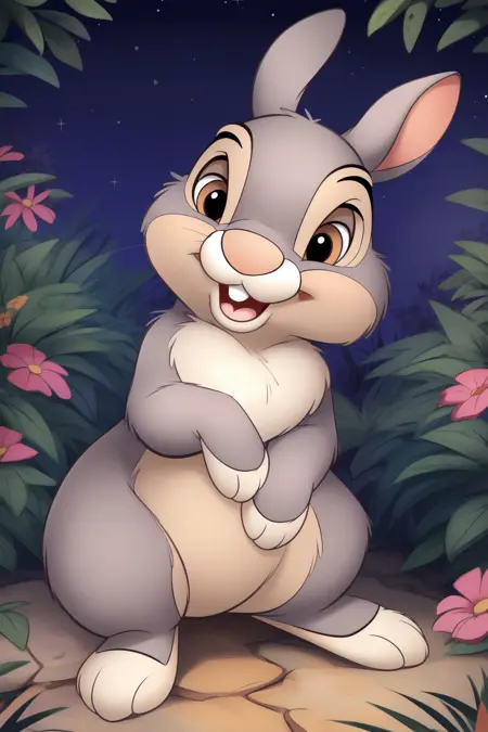 Thumper를 위한 추천 강화 태그: 회색 털, 황갈색 눈, 작은 야생 토끼 몸집, [1개의 앞니] (앞니는 때때로 이상하게 나올 수 있으므로 실험해보는 것이 좋지만, 대체로 잘 작동합니다.)