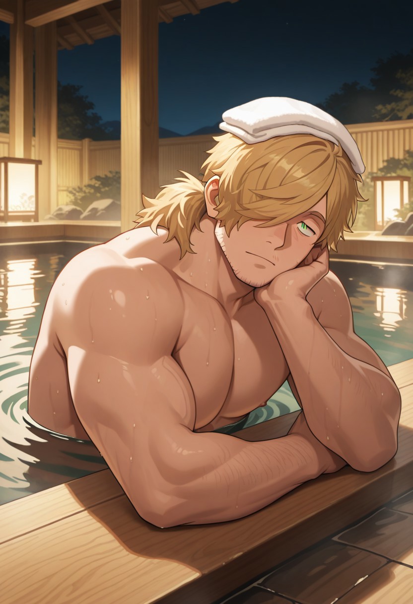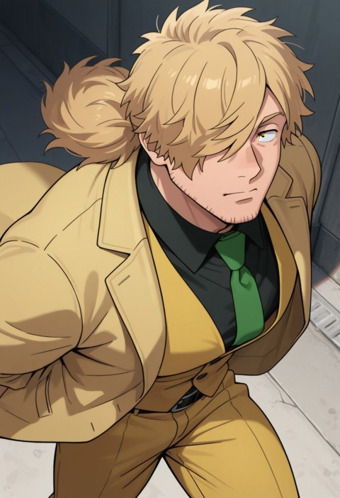 | Trained Words | 1boy, inugami_blonde hair, inugami_green eyes, stubble, sanpaku, hair over one eye, low-tied hair, long hair,Copied! solo, male focus, mature male,Copied! black collared shirt, green tie, yellow vest, yellow coat, belt, yellow pants,Copied! |