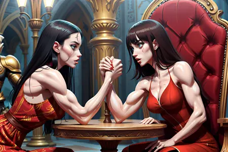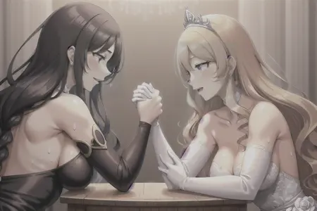 这就是最终成果,我觉得效果足够好,因此决定发布。由于这是我的第一个数据集,模型偏向于男性对女性的对战,但也能生成女对女和男对男的场景,所以我干脆直接命名为“掰手腕”而非“混合掰手腕”。实际上,我会用它来生成姿势(尤其是关键的握法),然后通过内补绘制来调整人物细节。