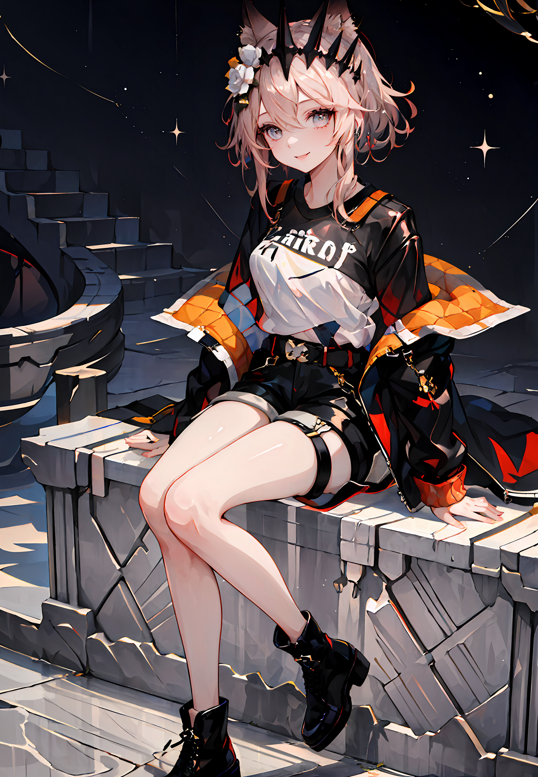 With jacket (Elite I / 精1): vendela, hair ornament, white dress, open jacket, thigh boots