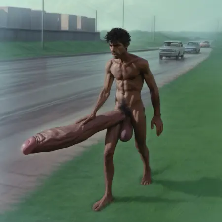 使用“Hyper penis”作为提示的风格标签,“a naked man”效果也不错,甚至更好,然后指定阴茎类型:“erect penis”、“hanging penis”、“foreskin”,再加风格标签:“bara style”、“hyper body style”、“anime style”、“skinny”。