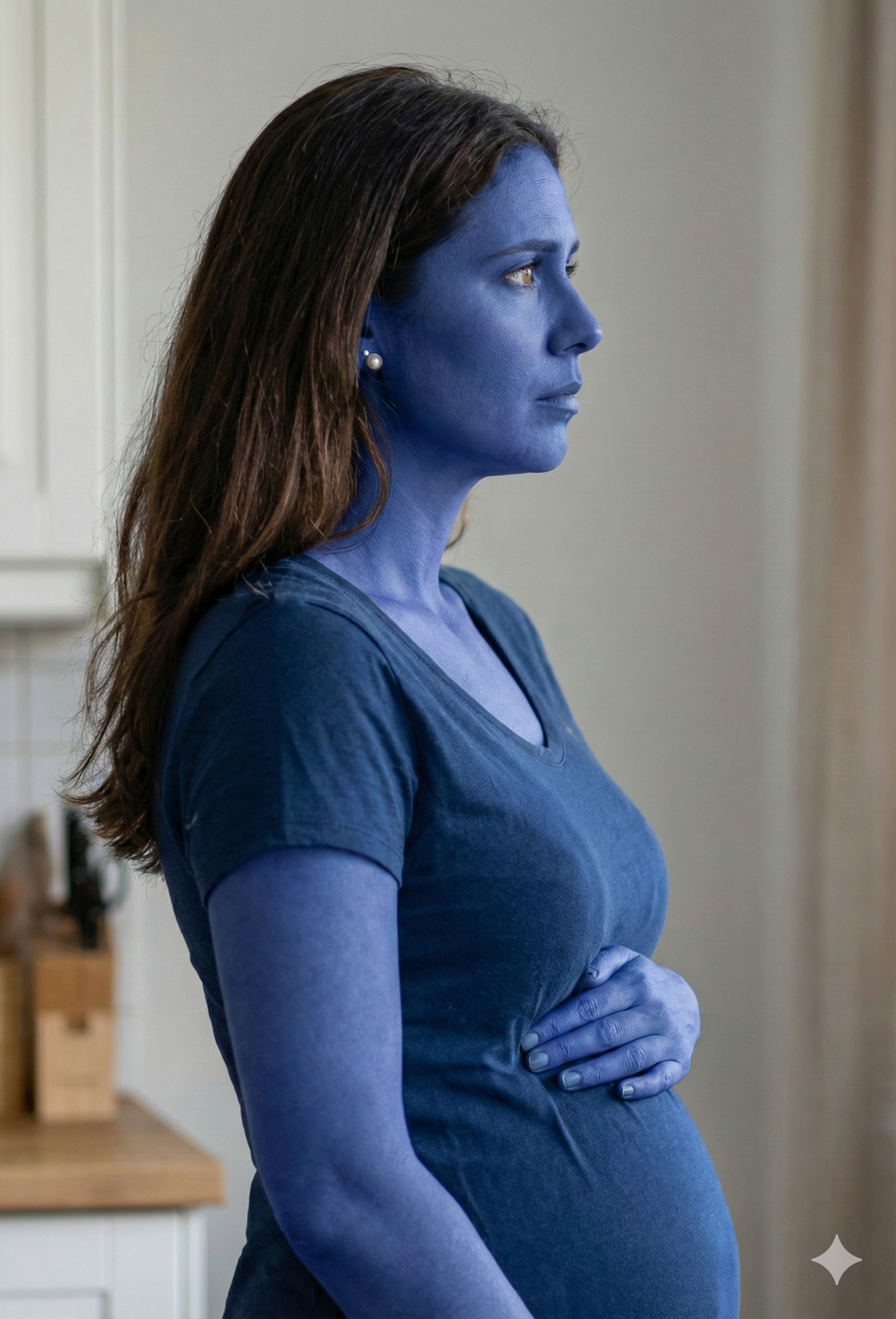 1. 발현 | 0.4 - 0.6 | turning blue, pale blue skin, slight swelling, confused expression, looking at hands