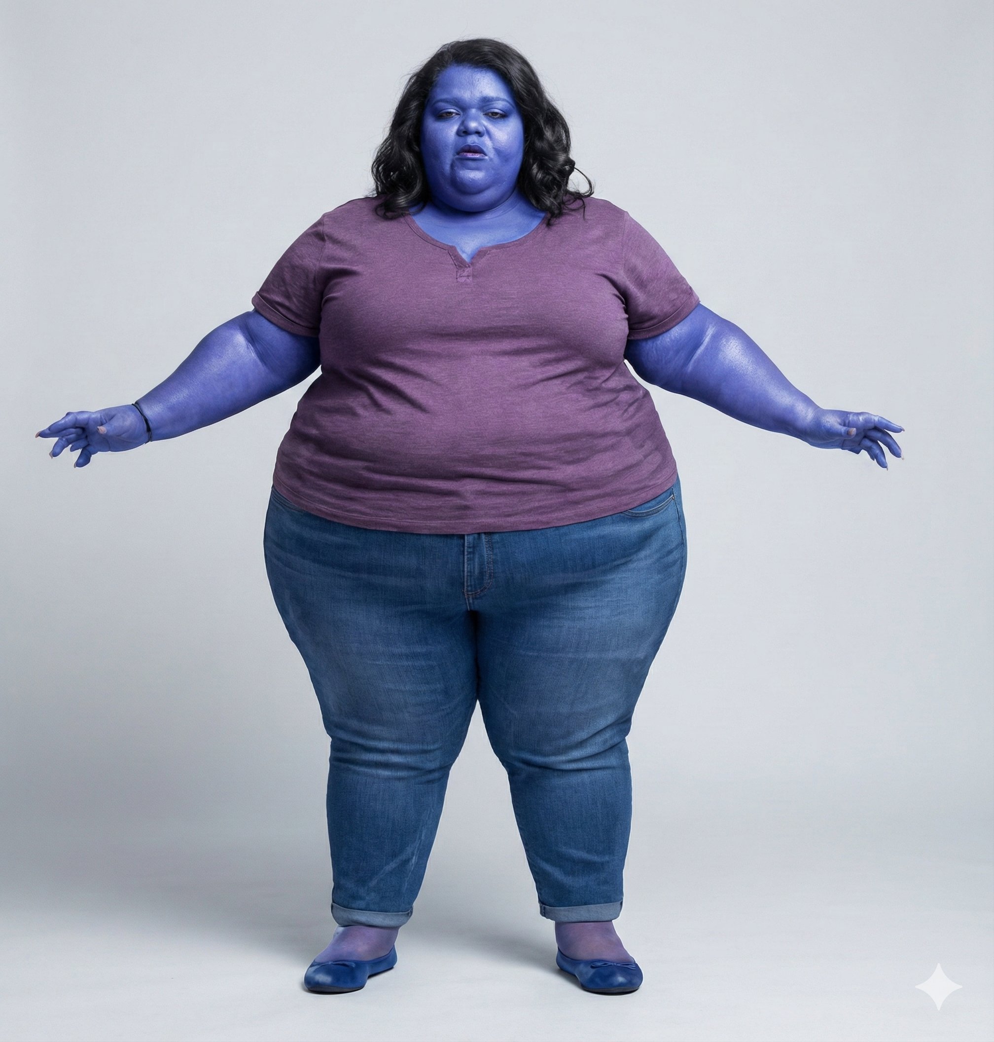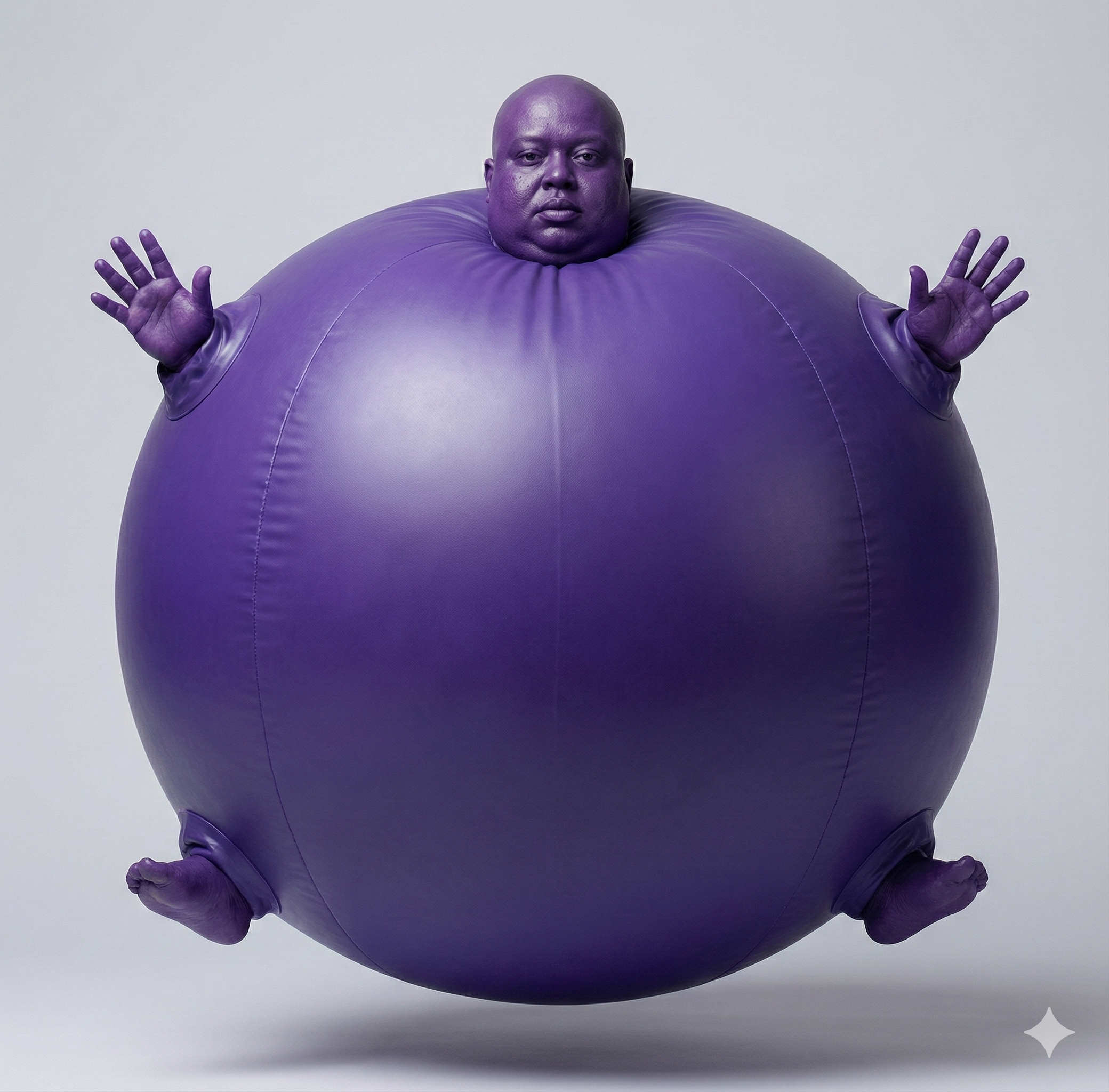 3. 완전 구형 | 1.0 | deep violet skin, full spherical body, limbs sinking into body, floating, inflated, ball shape