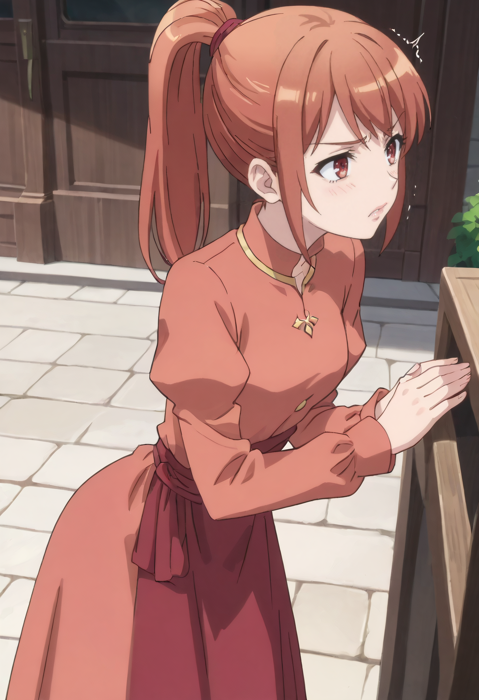 IAWMicah, 갈색 머리, 포니테일, 빨간 머리, 긴 머리, 빨간 눈, 높은 포니테일, 검은 머리,