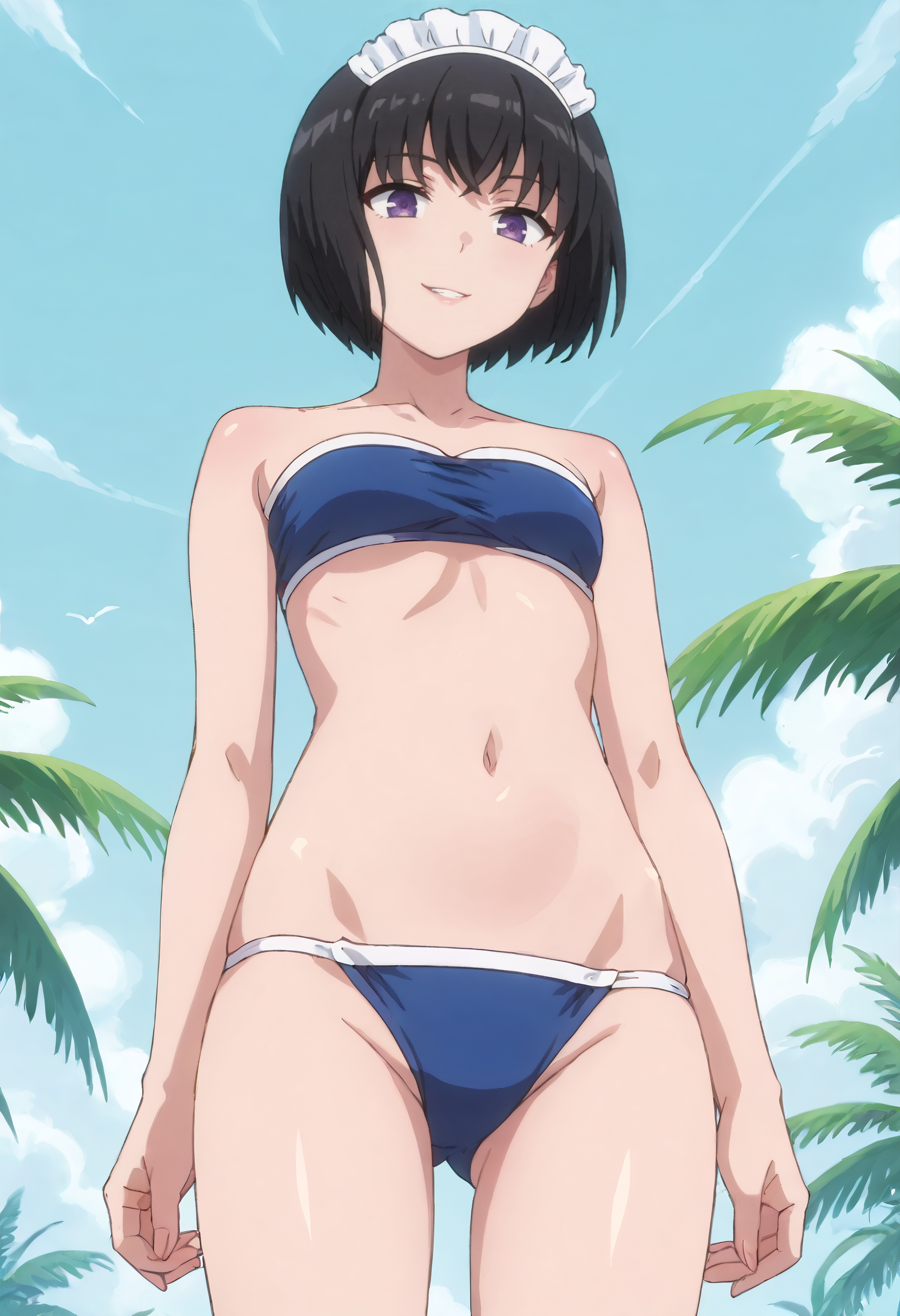 LapisSwimwear、ストラップレス、肩出し、メイドヘアアクセサリー、バンデウ、チューブトップ、水着、メイド、青いビキニ、ストラップレスビキニ、ビキニ、