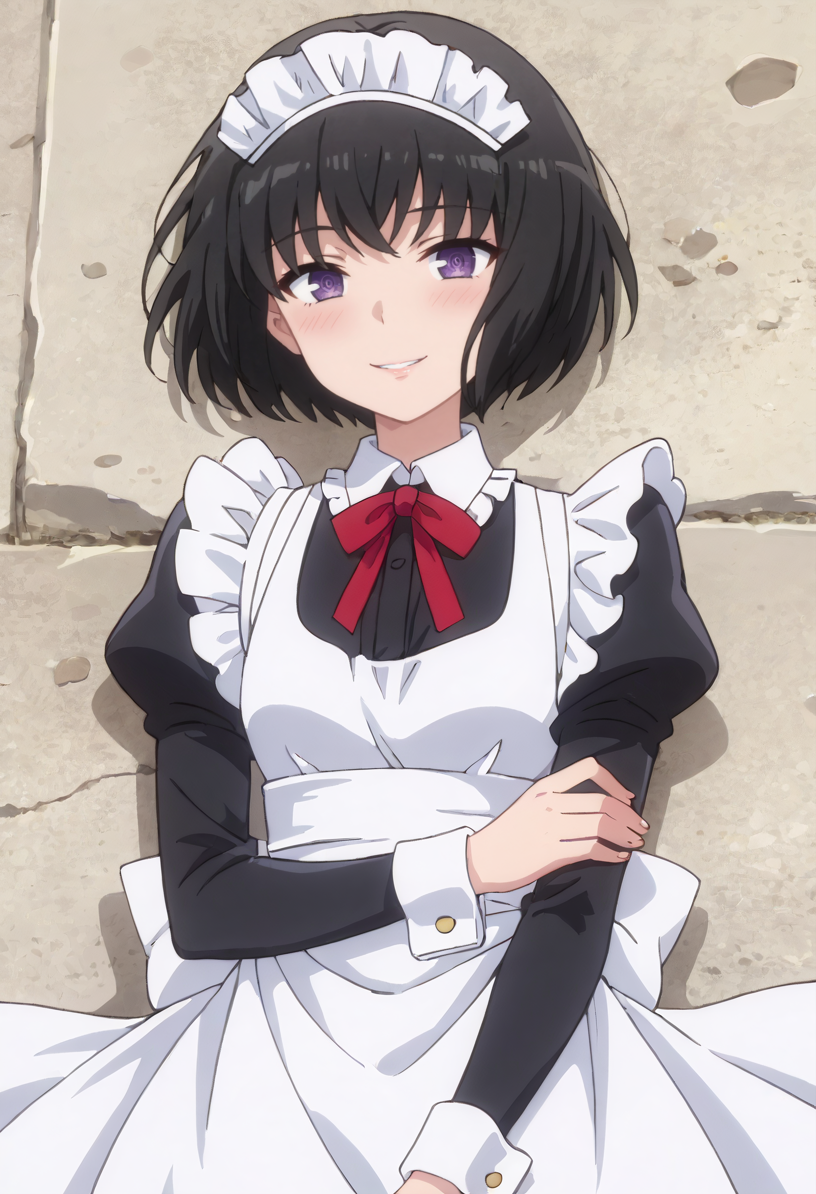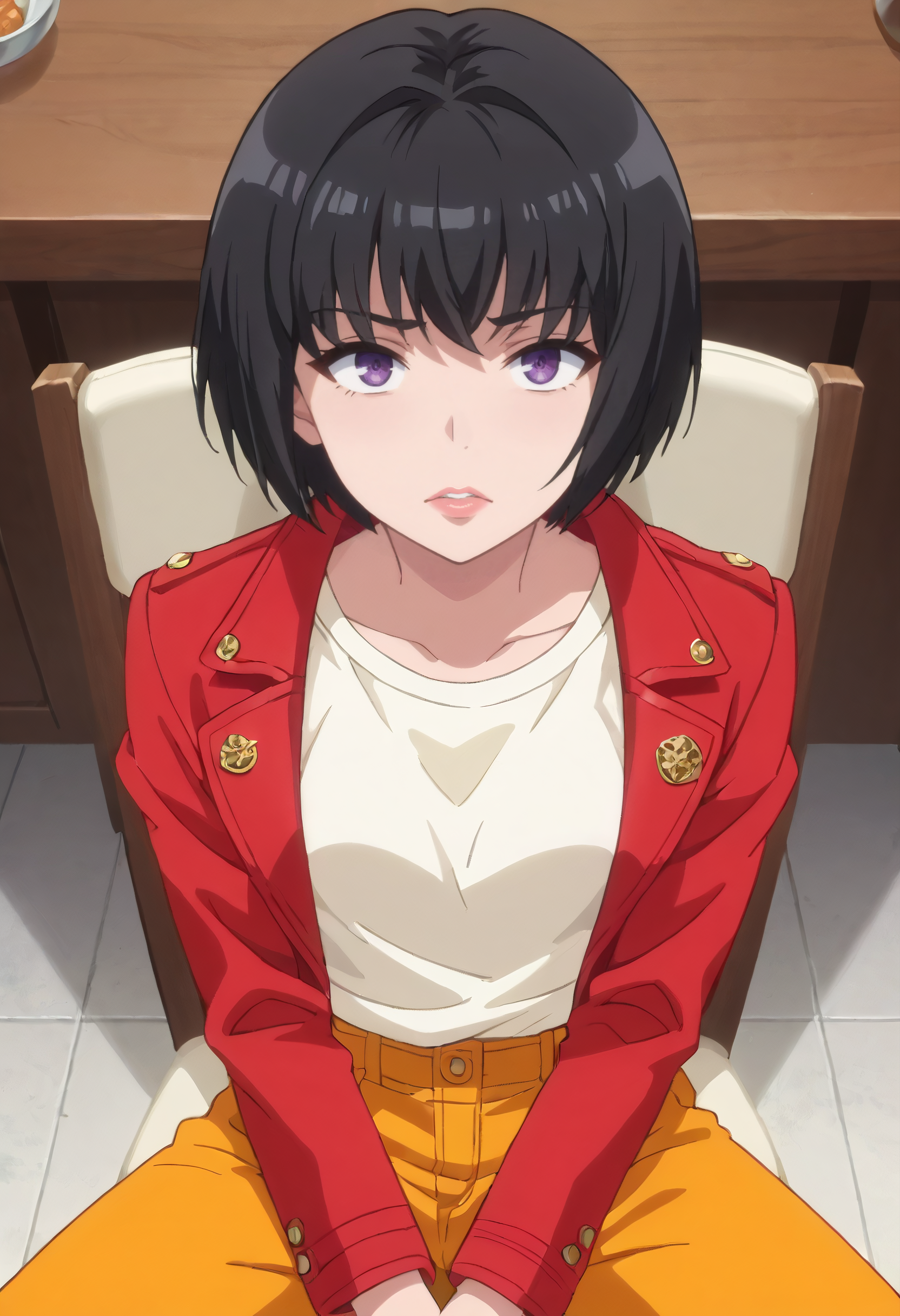IAWLapis、黒髪、短髪、紫の目、ボブカット、