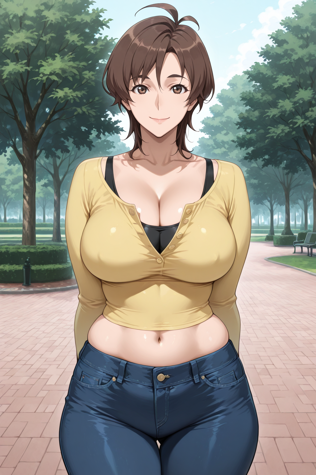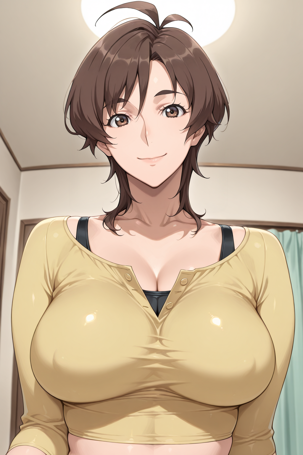 wbmasane, brown hair, short hair, antenna hair, brown eyes, mature female