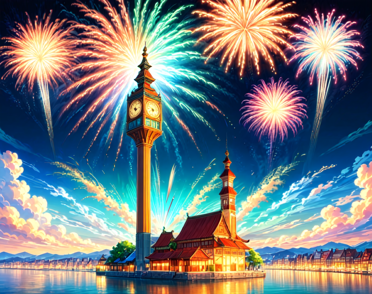 これは、大晦日のカウントダウン、真夜中の祝賀、そして元旦を描くためのSDXL背景LoRAです。要するに、カウントダウンがゼロになる瞬間です。