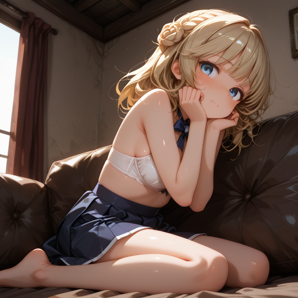 그런데 이상하게도 레이스 팬티는 클로치가 없는 형태로 생성되는 현상이 발생합니다. 그런 교사 이미지는 없었는데... nude에 반응하는 걸까요? 일단 nude를 0.8로 조정해 보았지만, 여전히 클로치가 없습니다. 팬티 쪽을 강화하는 게 나을지도 모릅니다.