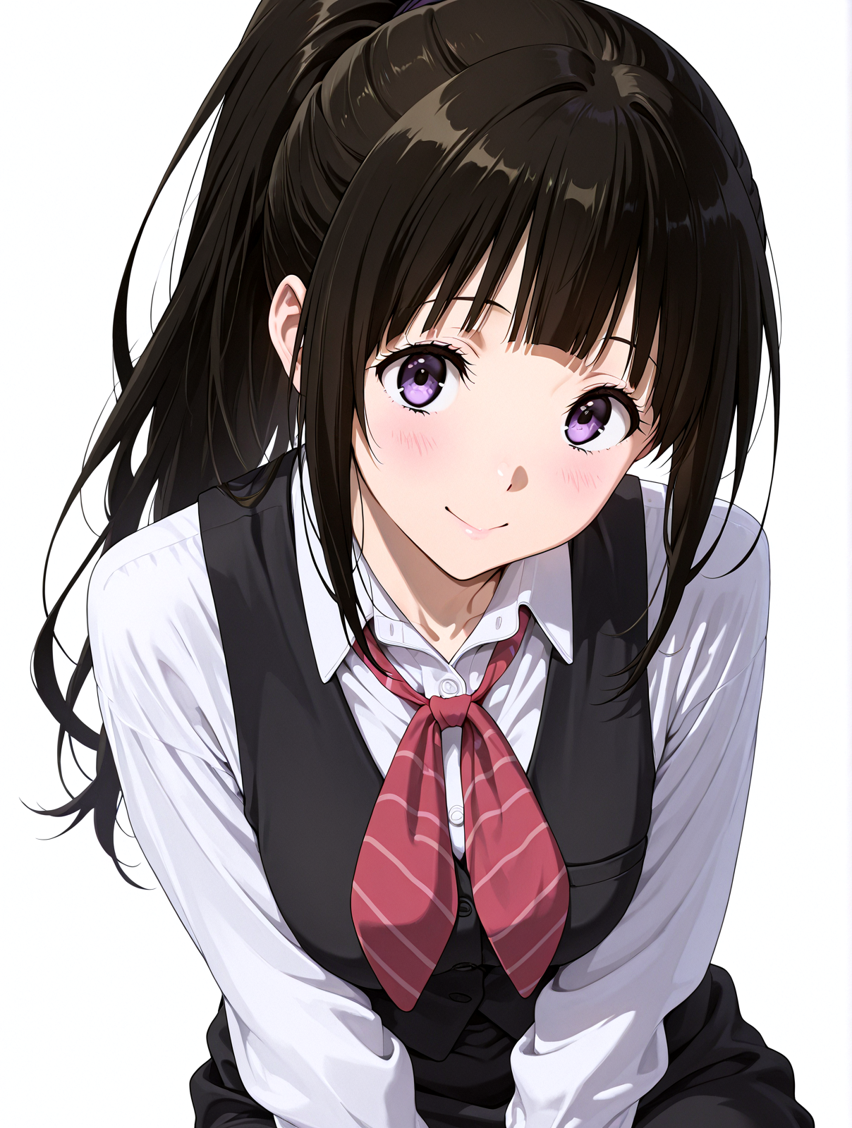 (((red stripe tie:1.4))), bank clerk uniform, professional ribbon tie, banker-style decorative tie, symmetrical twin tails, restrained design, corporate formal wear