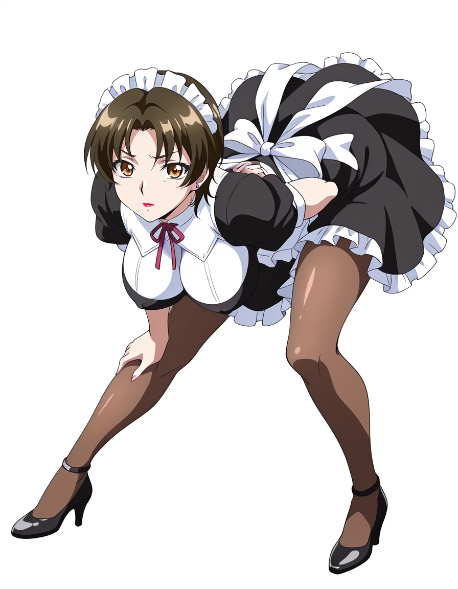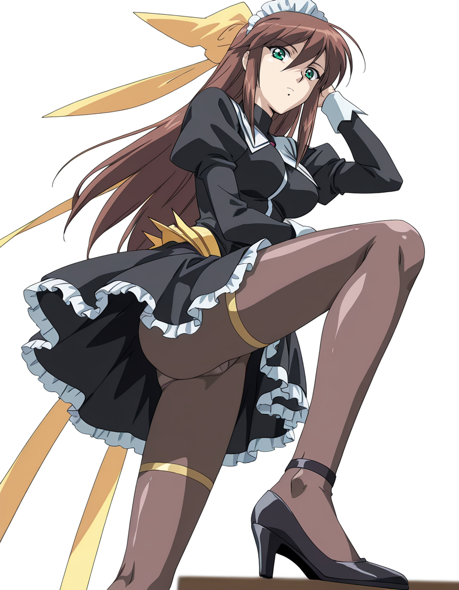 mai_bjnun,nun,black_dress,frilled_dress,maid_headdress,brown_pantyhose,high_heels,black_footwear,colored_inner_shose,red_footwear