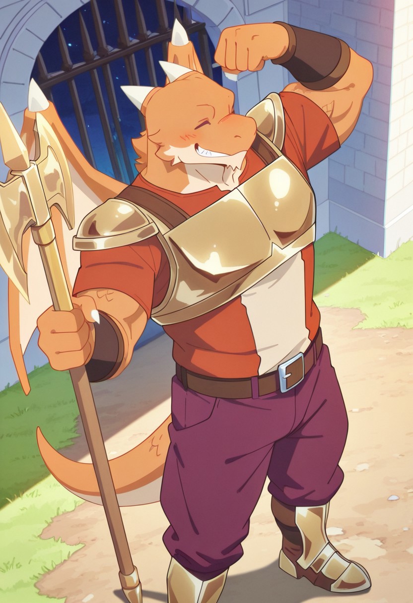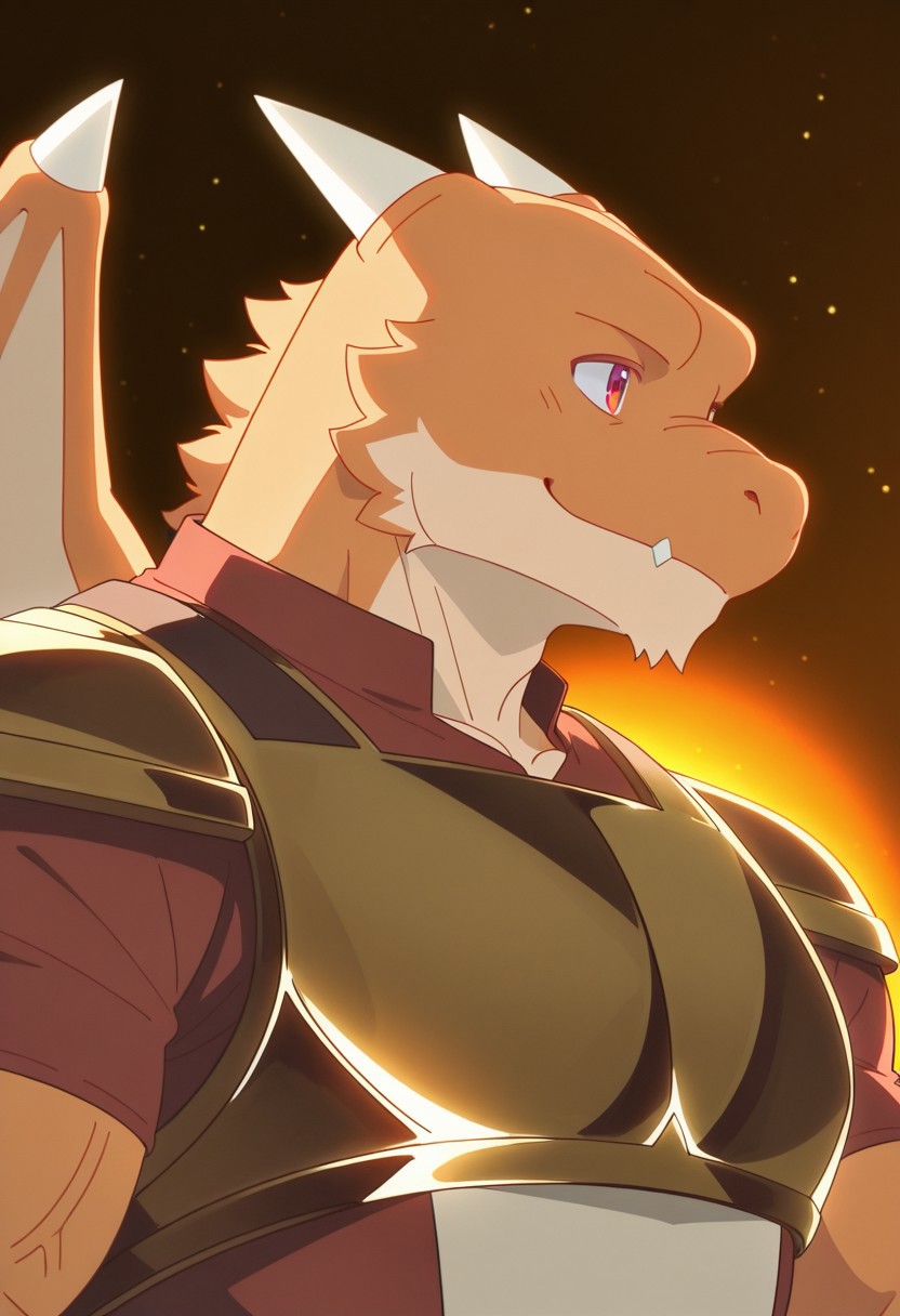 • 强化提示:“毛茸茸的男性,鳞片,龙,龙尾,龙翼,红眼睛”