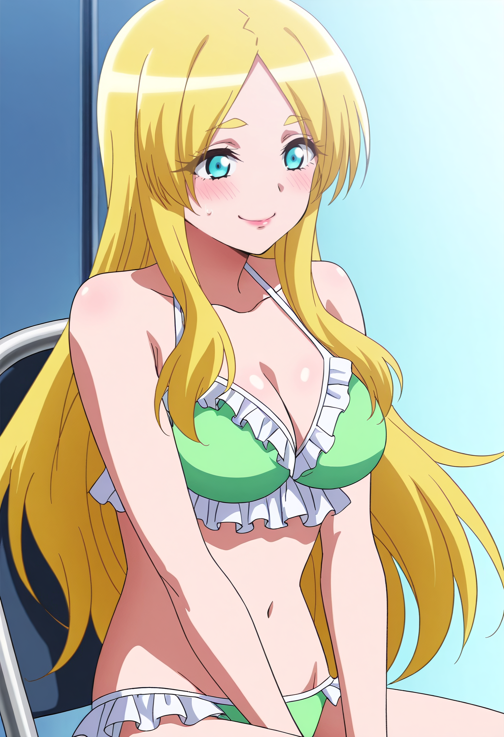 MOKGloria, 금발, 긴 머리, 파란 눈, 갈라진 앞머리,