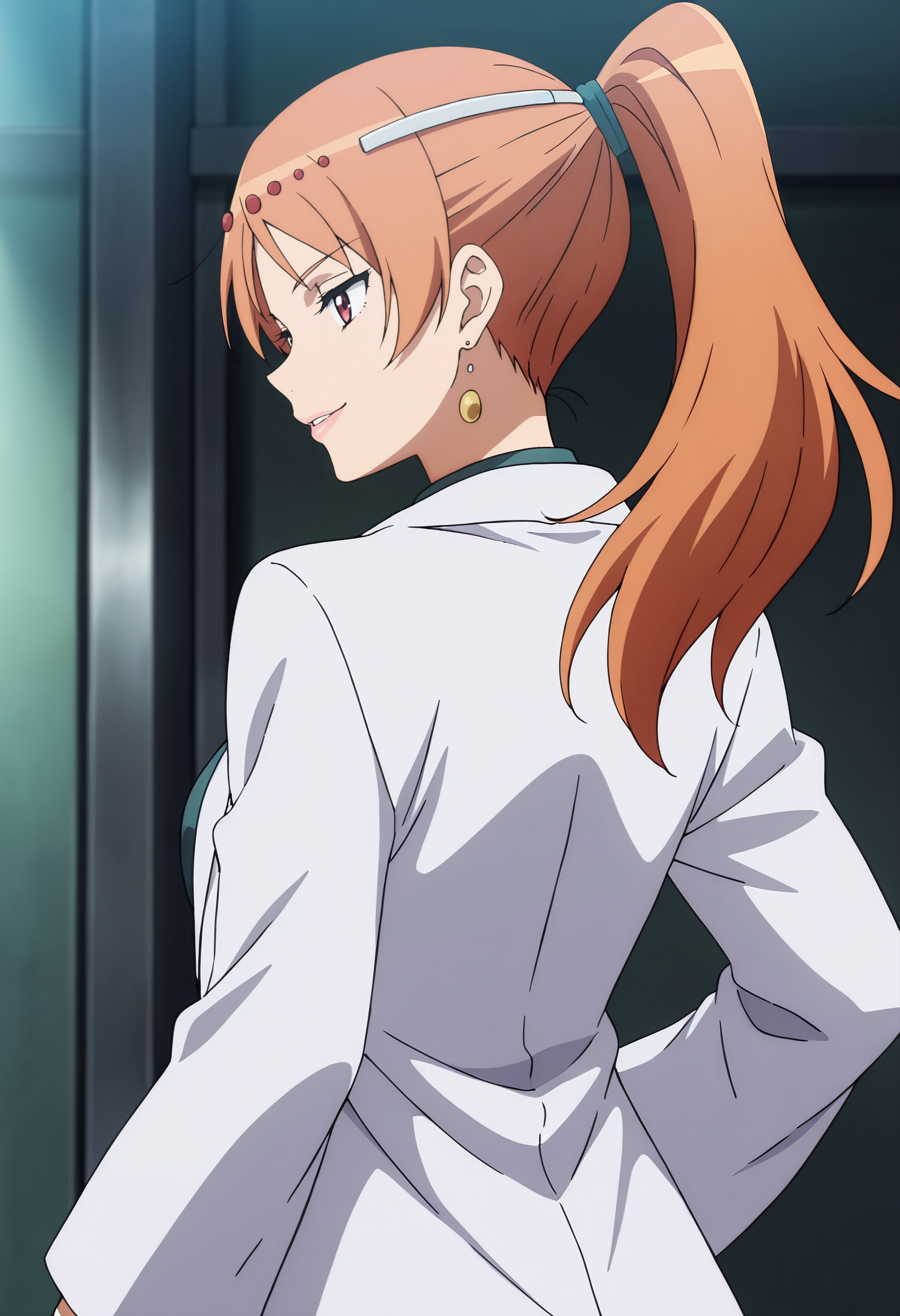PBBWizCoat, 귀걸이, 보석, 셔츠, 재킷, 긴 소매, 코트, 머리 장식, 원형 머리장식, 실험복, 흰색 코트, 녹색 셔츠, 열린 옷, 진주 귀걸이, 열린 코트,
