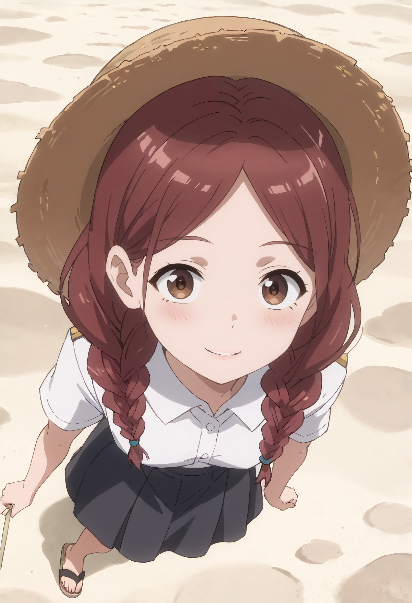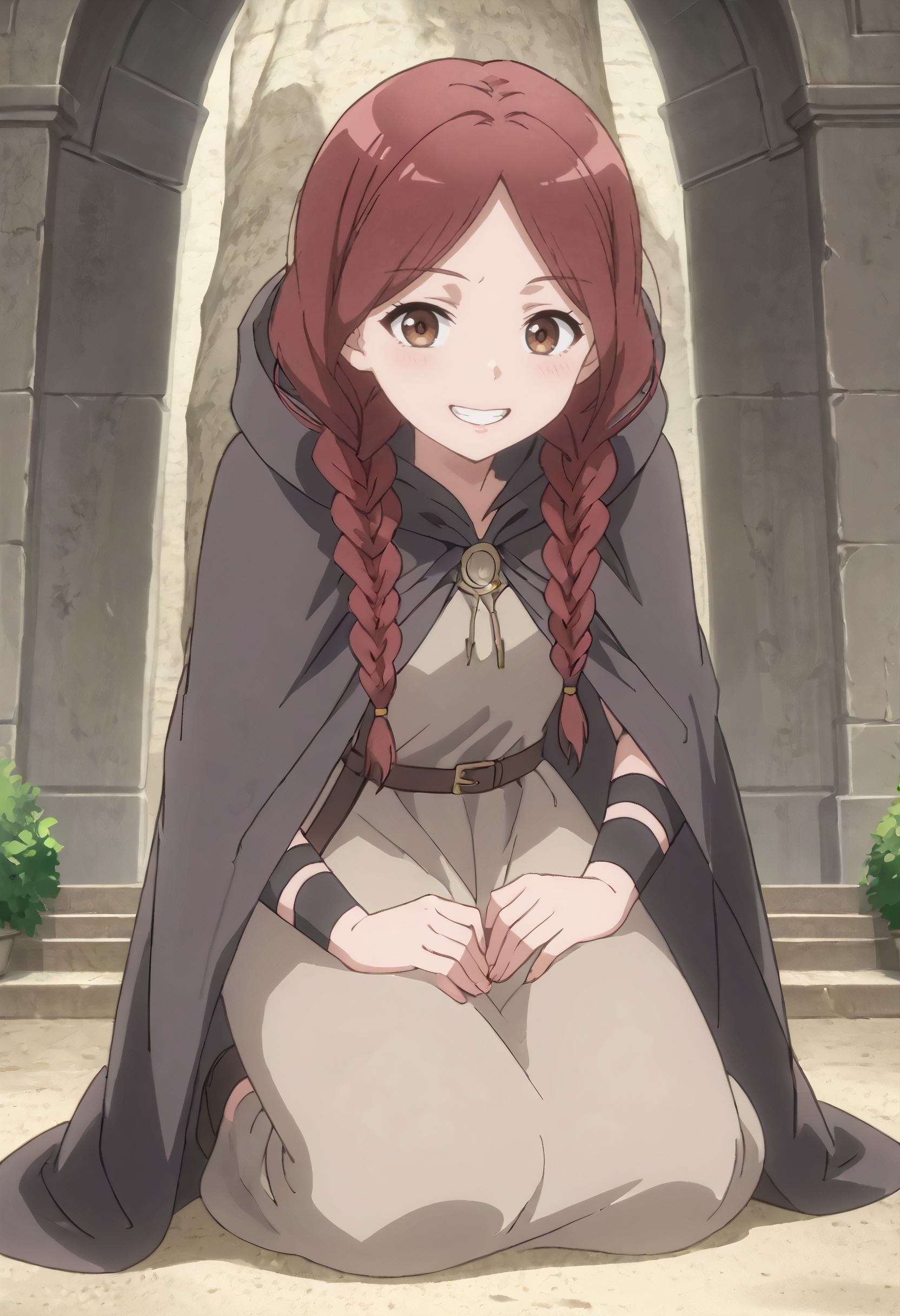 IAWWendy, 더블 브레이드, 브레이드, 긴 머리, 빨간 머리, 어깨를 덮는 머리, 갈색 눈, 트윈테일, 중간 갈라진 앞머리, 낮은 더블 브레이드,