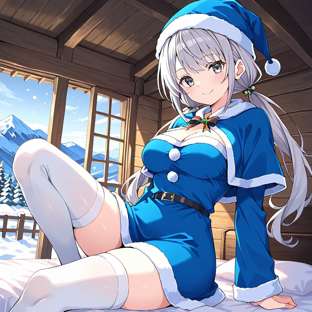 추가: 파란 드레스, 파란 산타 모자, 파란 산타 복장, 허벅지 양말