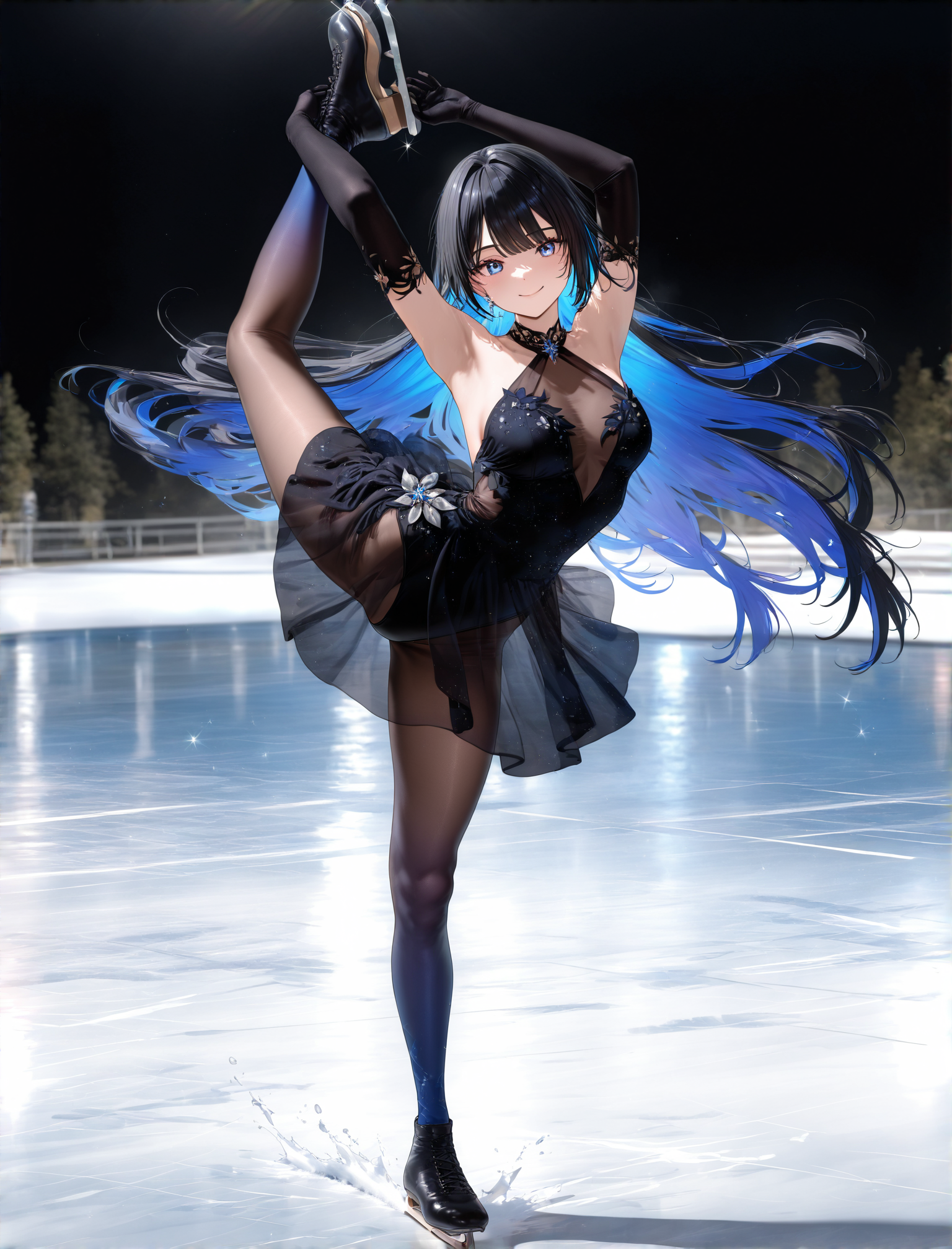 "sample_prompts": "spiral pose, 1girl, kamisaki hikaru, solo, black hair, yellow eyes, long hair, black elbow gloves, ponytail, black dress, black ice skates, looking at viewer, standing on one leg, medium breasts, full body, necklace, closed mouth, flexible, figure skating dress, figure skating, outstretched arms, leg up, leaning forward, leg behind head, cross-laced ice skate, very awa, masterpiece, best quality, good quality, absurdres, highres, newest, very aesthetic, --n worst aesthetic, worst quality, normal quality, lowres, old, early, mid, recent, ambiguous form, bad anatomy, bad fingers, bad hands, watermark, username, logo, signature, bar censor, mosaic censoring --w 1024 --h 1024 --l 5 --s 30",