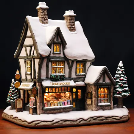 This is a collection of LoRA models of hand-crafted ceramic models in the style of Liliput Lane and David Winter Cottages.