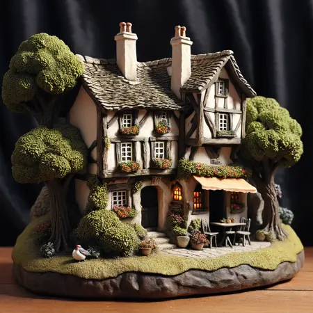 这是一个采用 Liliput Lane 和 David Winter 小屋风格的手工陶瓷模型 LoRA 集合。