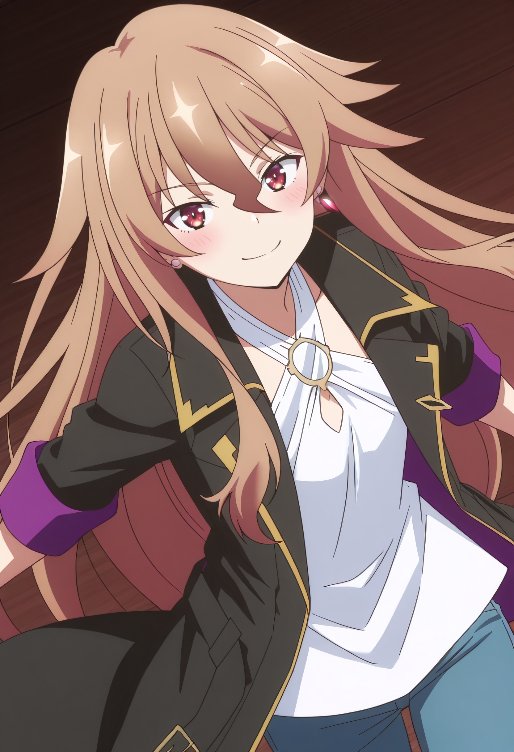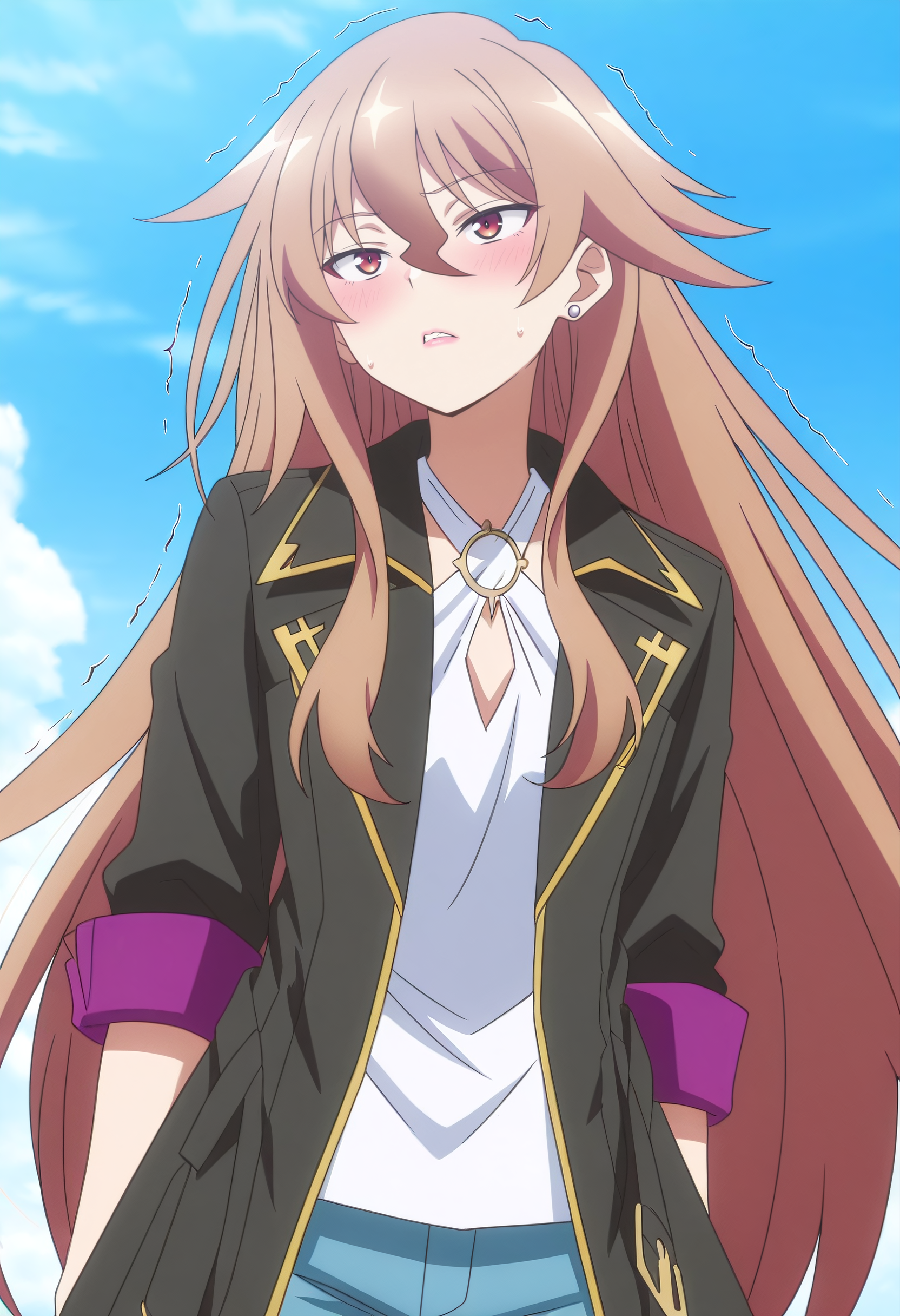 HulemyOutfit、ジャケット、シャツ、黒いジャケット、ジュエリー、オープンな服、イヤリング、白いシャツ、コート、黒いコート、長袖、オープンジャケット、ズボン、青いズボン、ジーンズ、デニム、袖をまくった、クロスハーネス