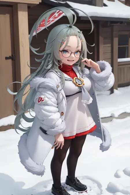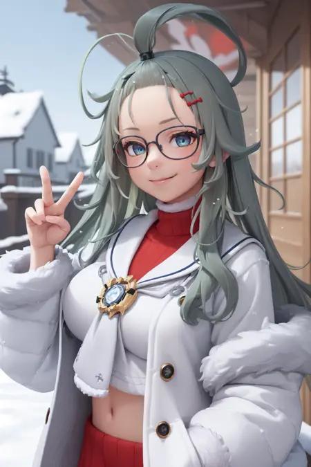 Trigger Word : merufi, glasses, long ahoge, blue eyes, bangs pinned back,