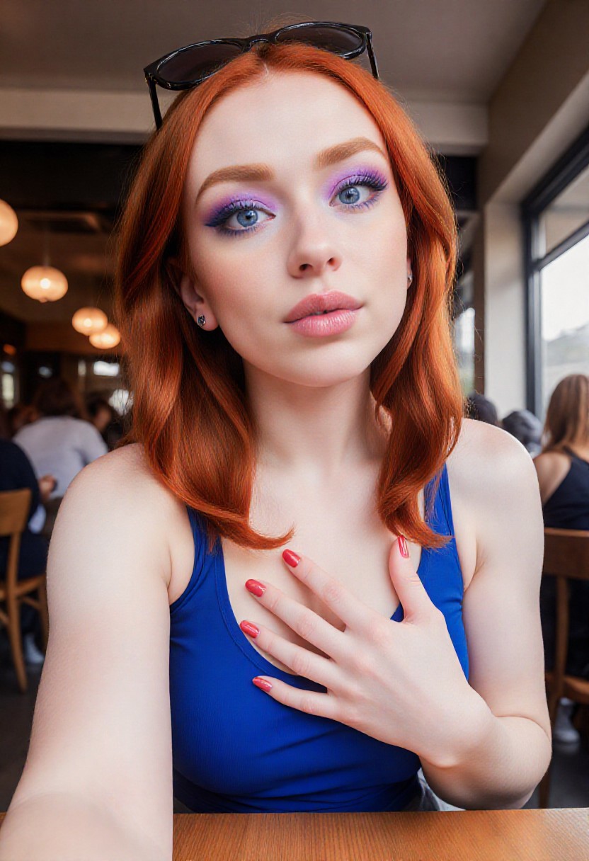 이 모델은 오토umn이라는 가상의 붉은 머리 여성을 생성합니다.