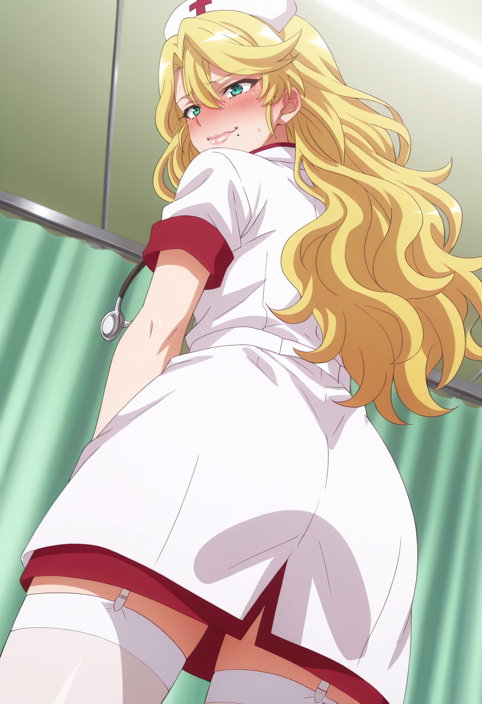JHNDirector、金髪、緑の目、長い髪、口の下のほくろ、ほくろ、眉間の髪、波状の髪