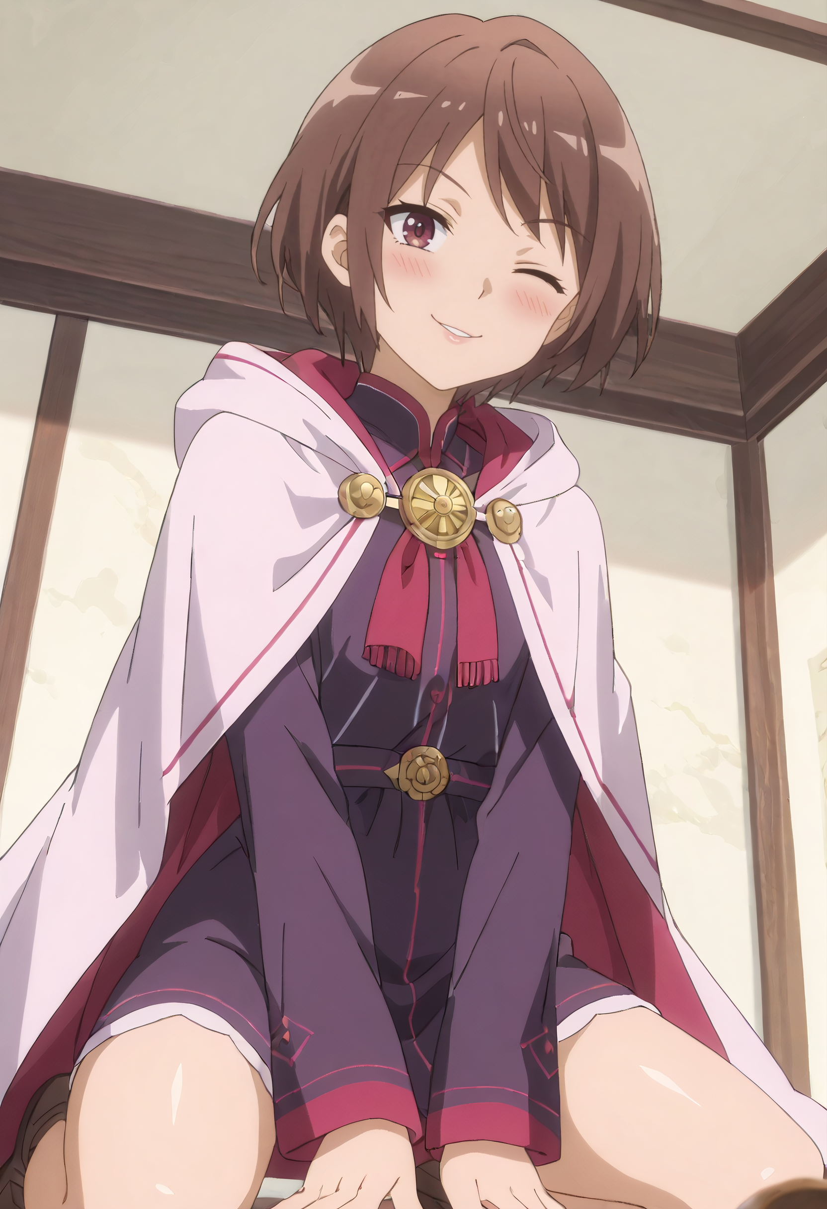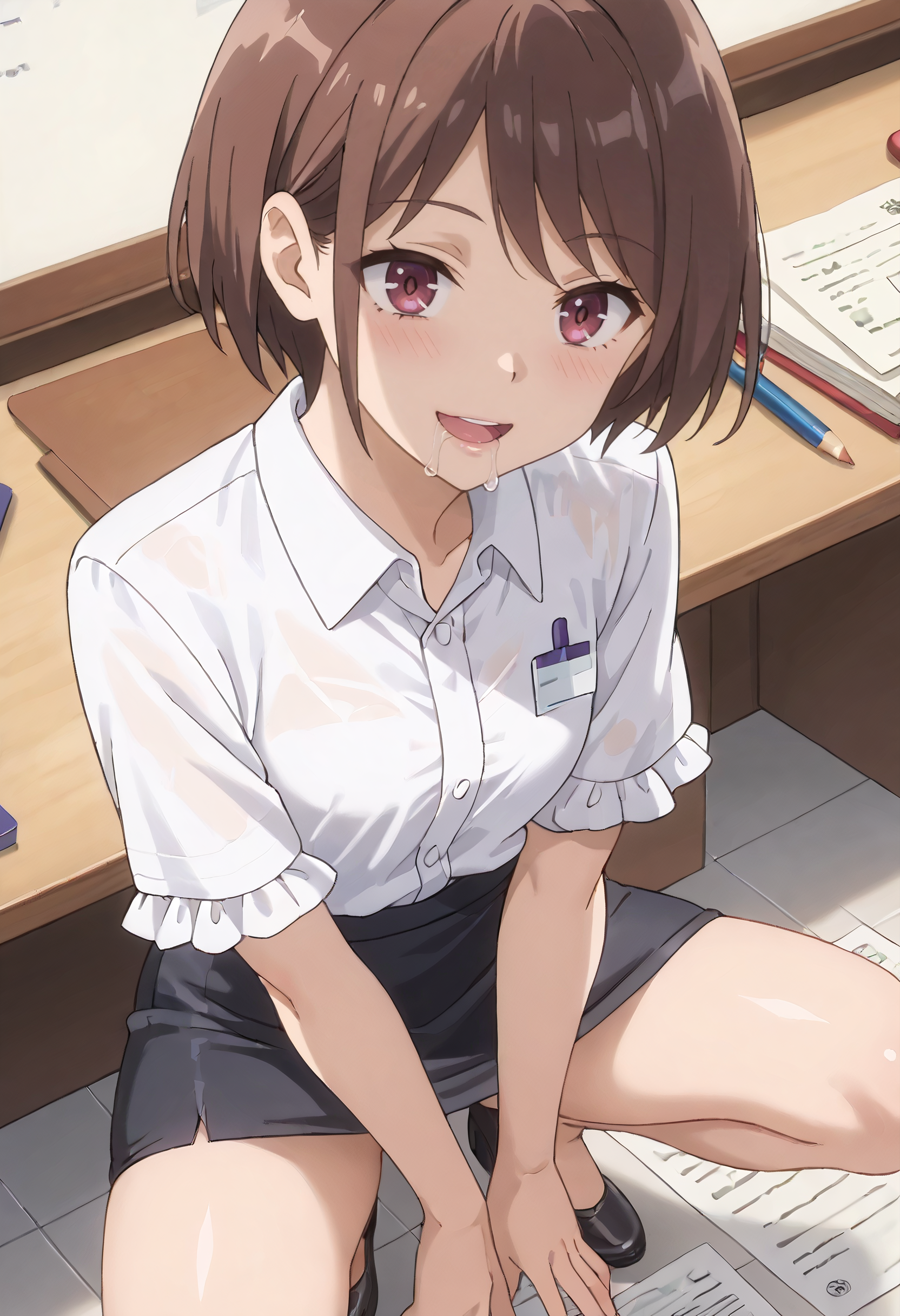 IAWSulas, 단발, 갈색 머리, 보라색 눈, 갈색 눈, 붉은 눈,