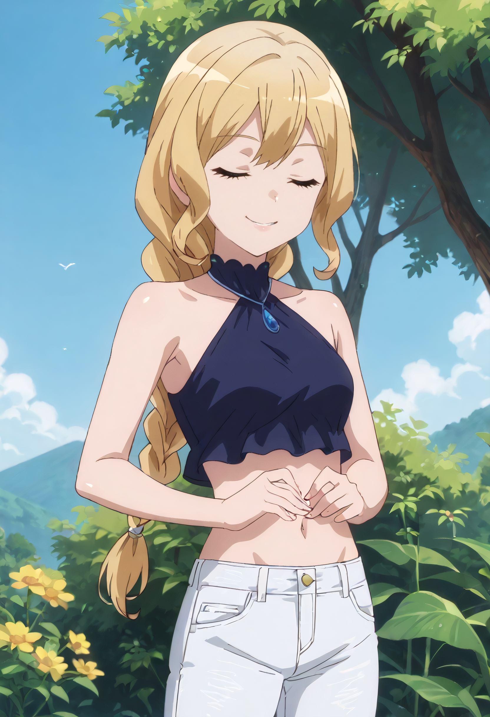 IAWReliel, 금발, 긴 머리, 땋은 머리, 파란 눈, 단일 땋은 머리, 땋은 꼬리, 측면 머리카락, 눈 사이의 머리카락,