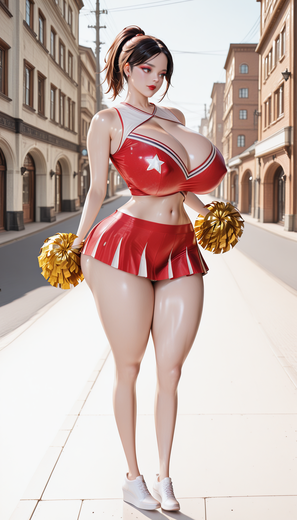 Klothes_0046, Kostume, Cheerleader, (Lowleg:1.1) Skirt, Pom Pom, Navel