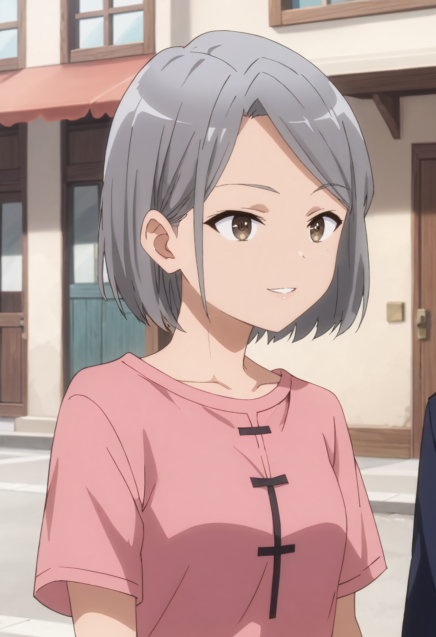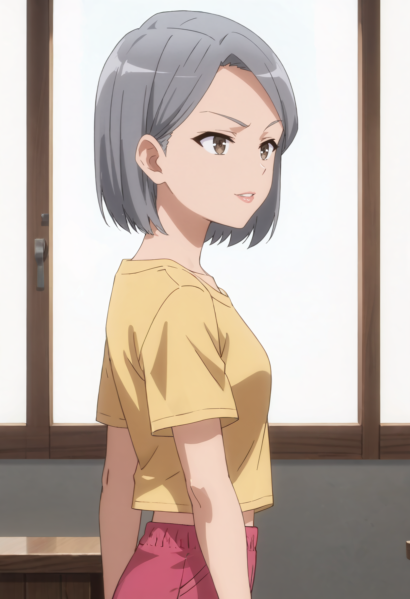 IAWRebecca, 갈색 눈, 단발머리, 회색 머리, 쓸어올린 앞머리, 볼컷,